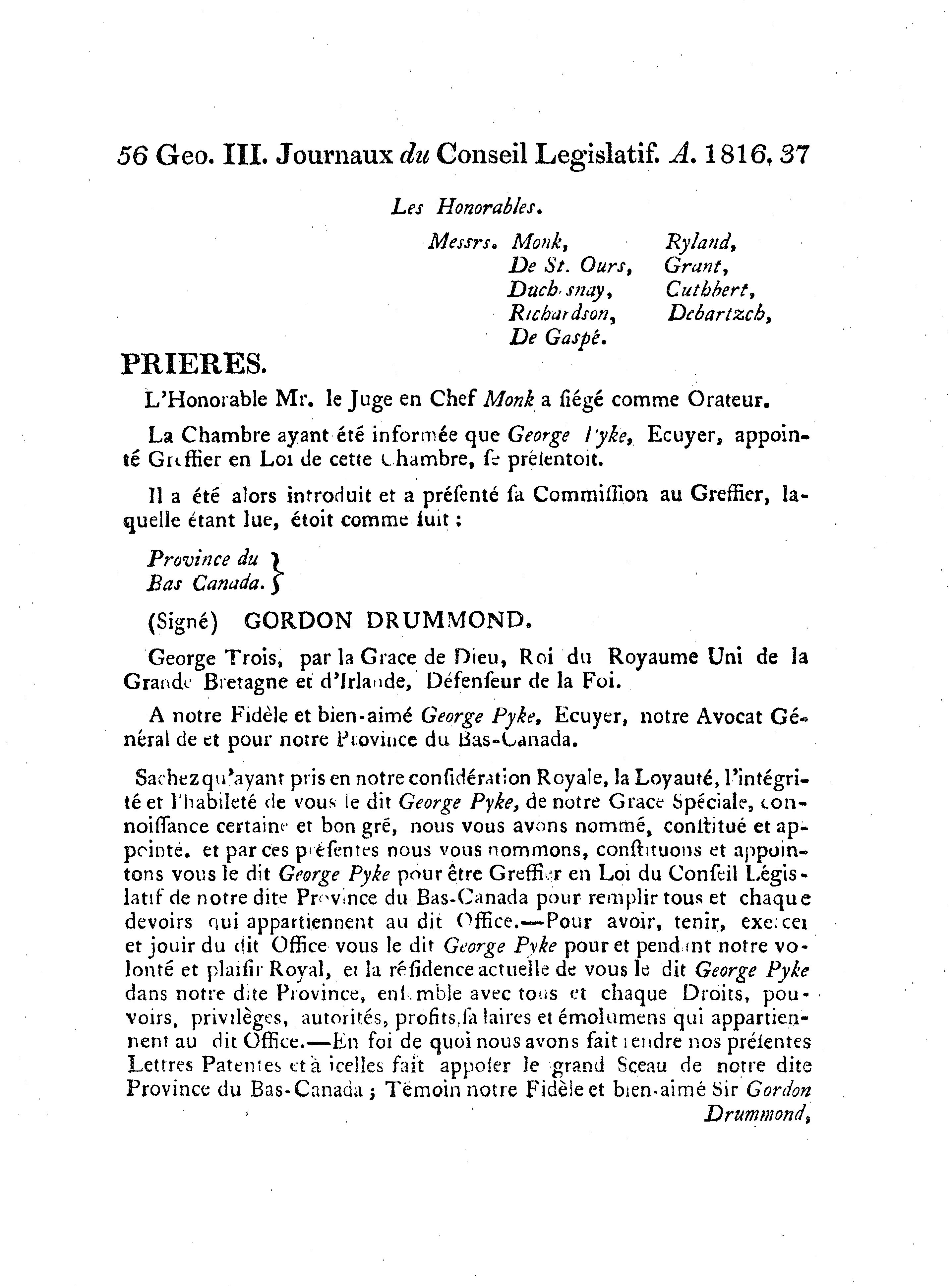 - Journaux du Conseil législatif de la province du Bas-Canada, étant la seconde session du huitième parlement provincial : 1816