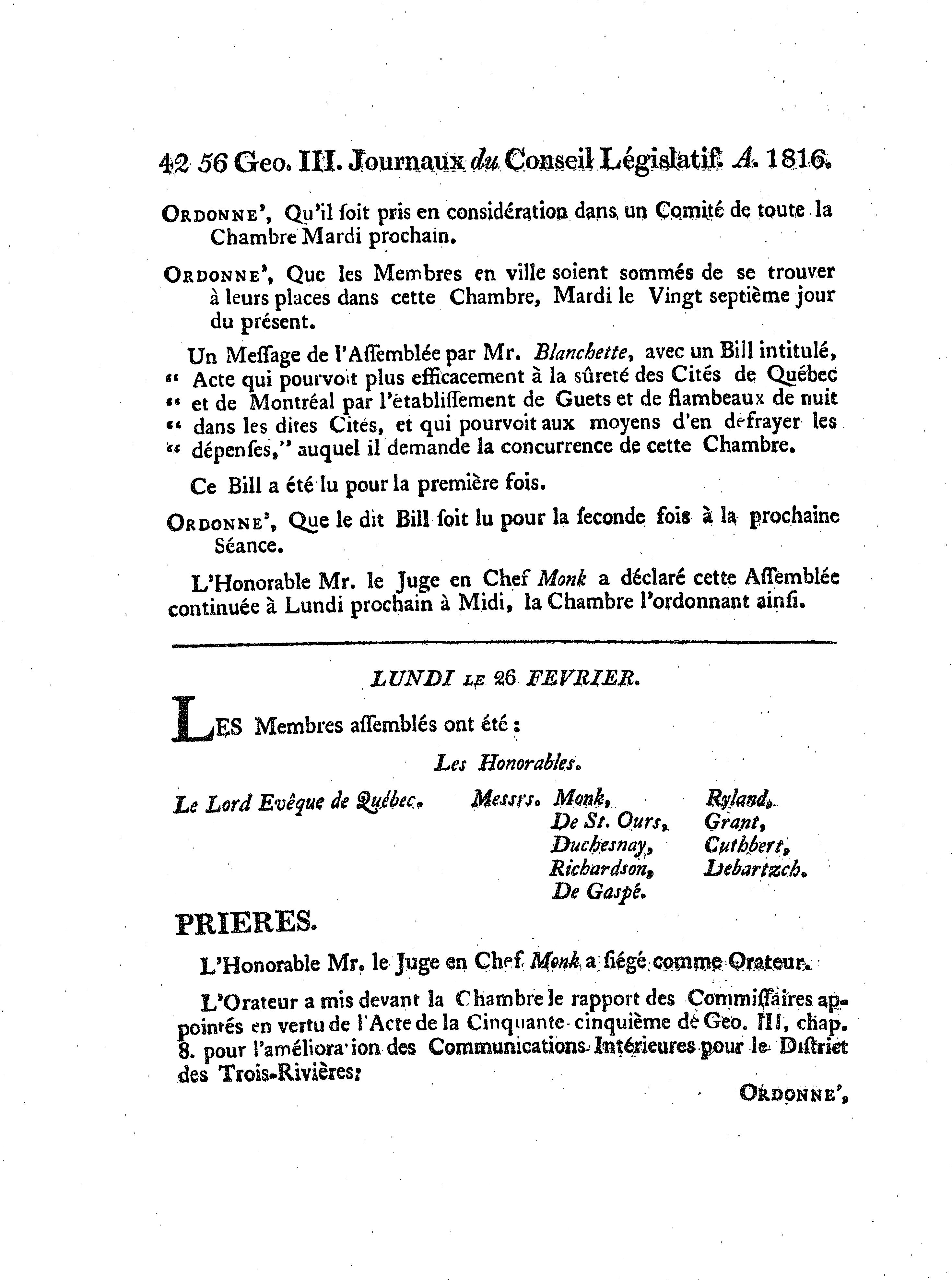- Journaux du Conseil législatif de la province du Bas-Canada, étant la seconde session du huitième parlement provincial : 1816