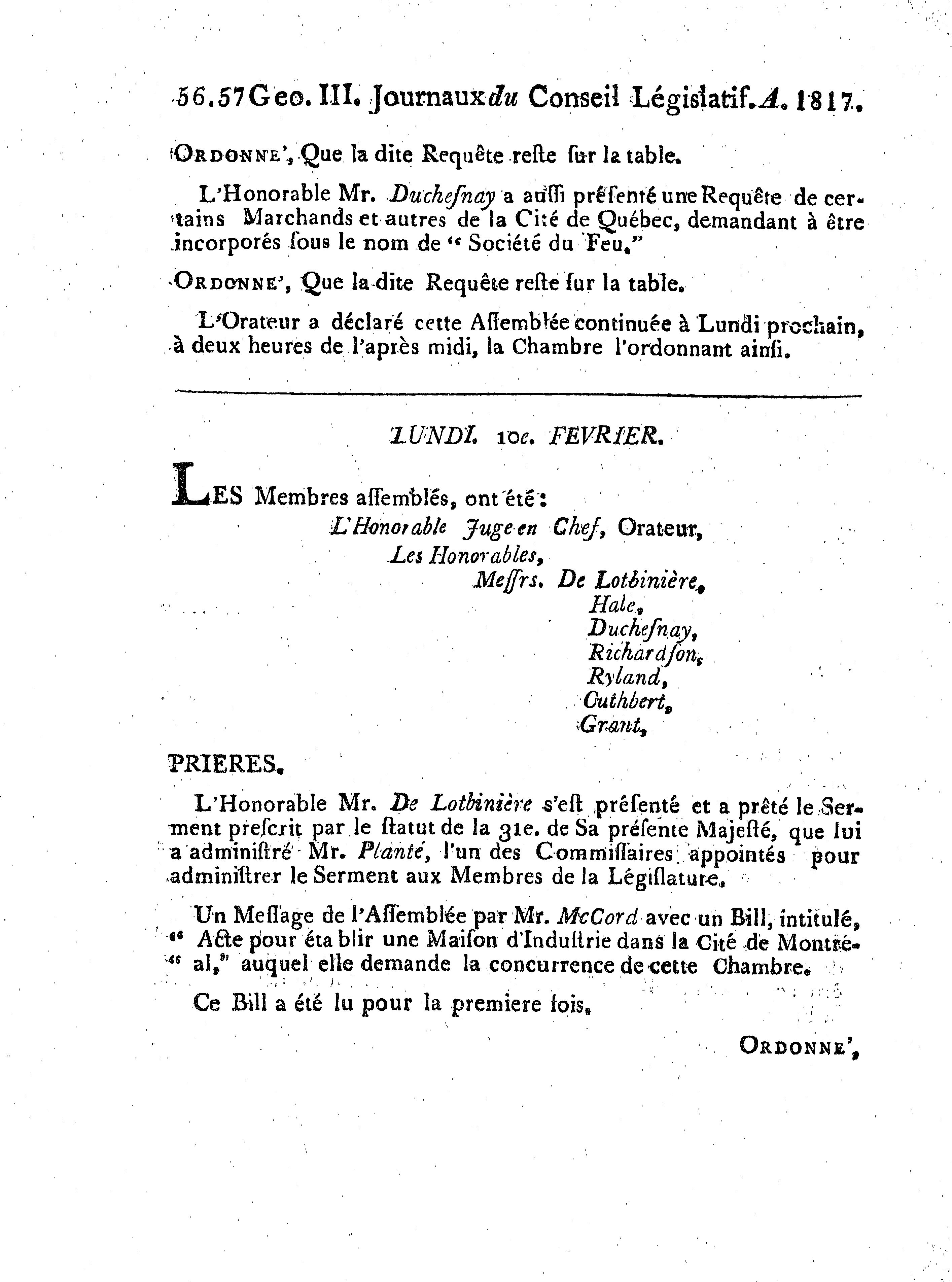 Journaux du Conseil législatif de la province du Bas-Canada, étant la première session du neuvième parlement provincial : 1817