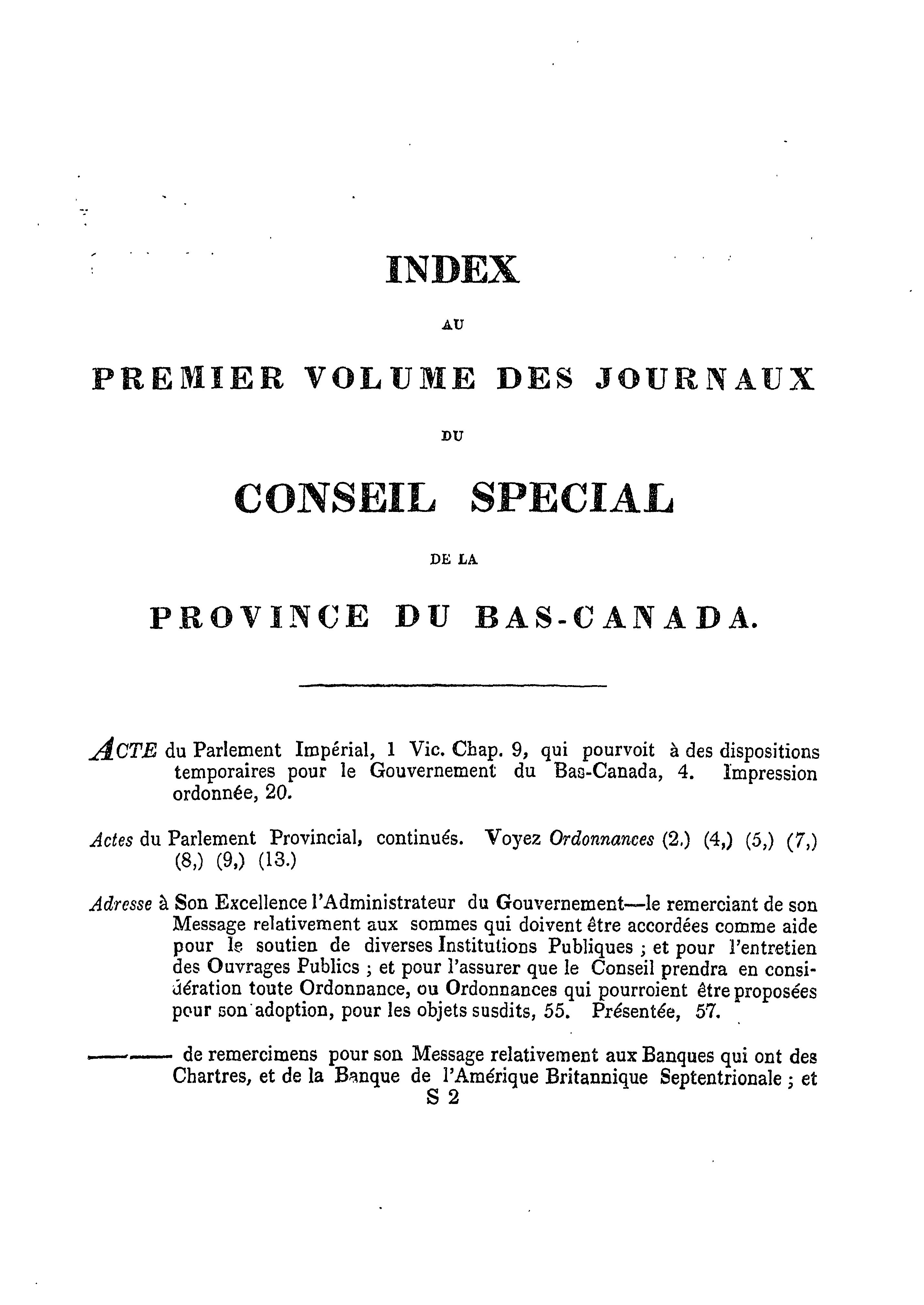 Journaux du Conseil spécial de la province du Bas-Canada ... : Journaux du Conseil spécial de la province du Bas-Canada depuis le 18e avril, jusqu'au 5e mai, 1838 ... : [Vol. 1] (1838)
