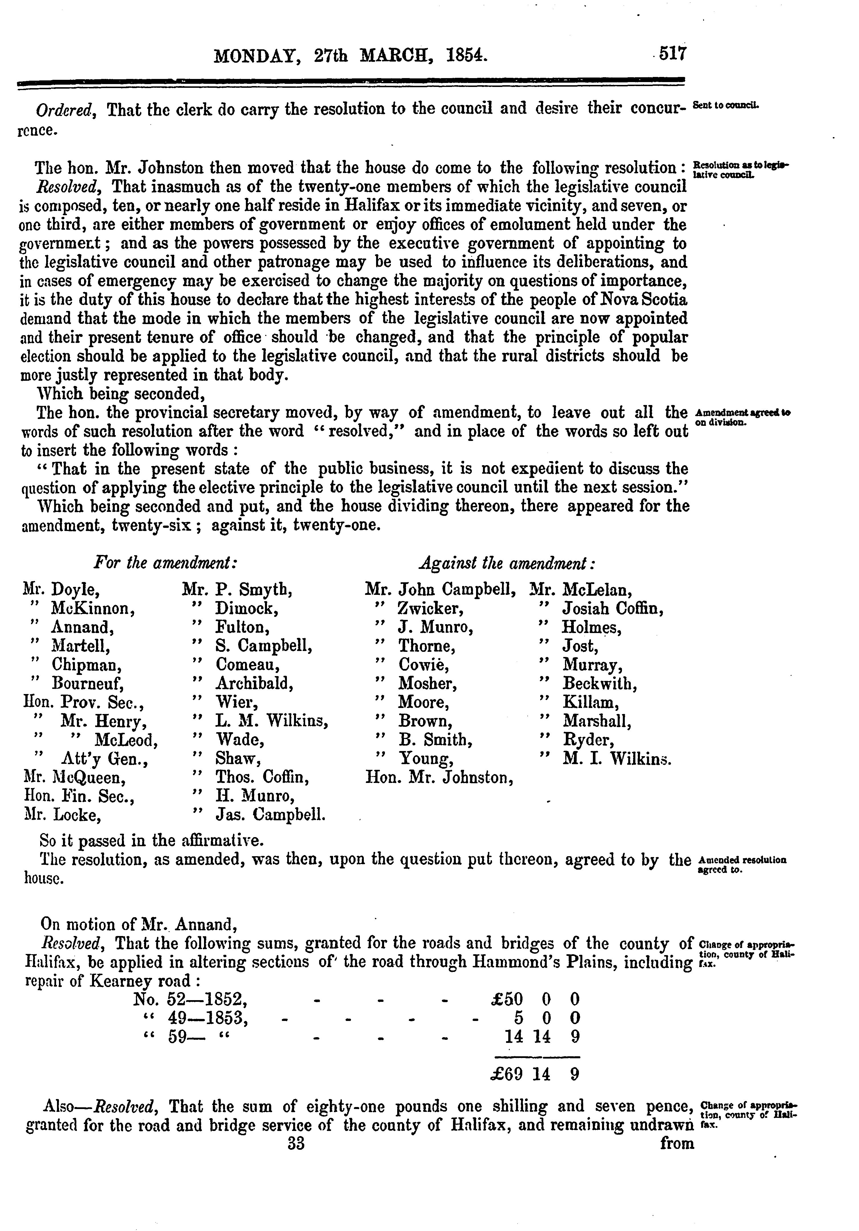 Journal and votes of the House of Assembly for the province of Nova Scotia : Journal and proceedings of the House of Assembly, Session 1854 : 1854