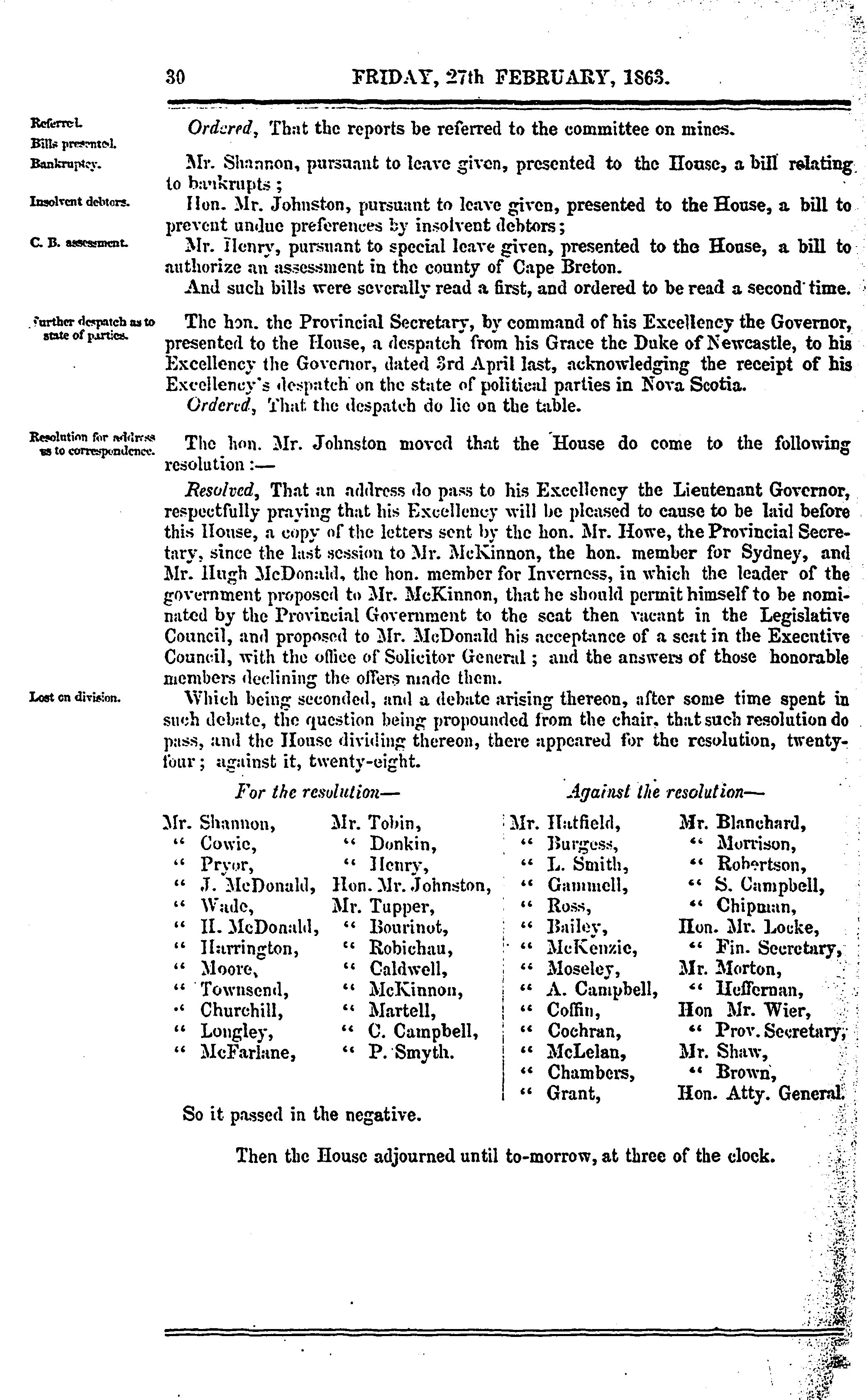 Journal and proceedings of the House of Assembly of the province of Nova Scotia, Session 1863 : 1863