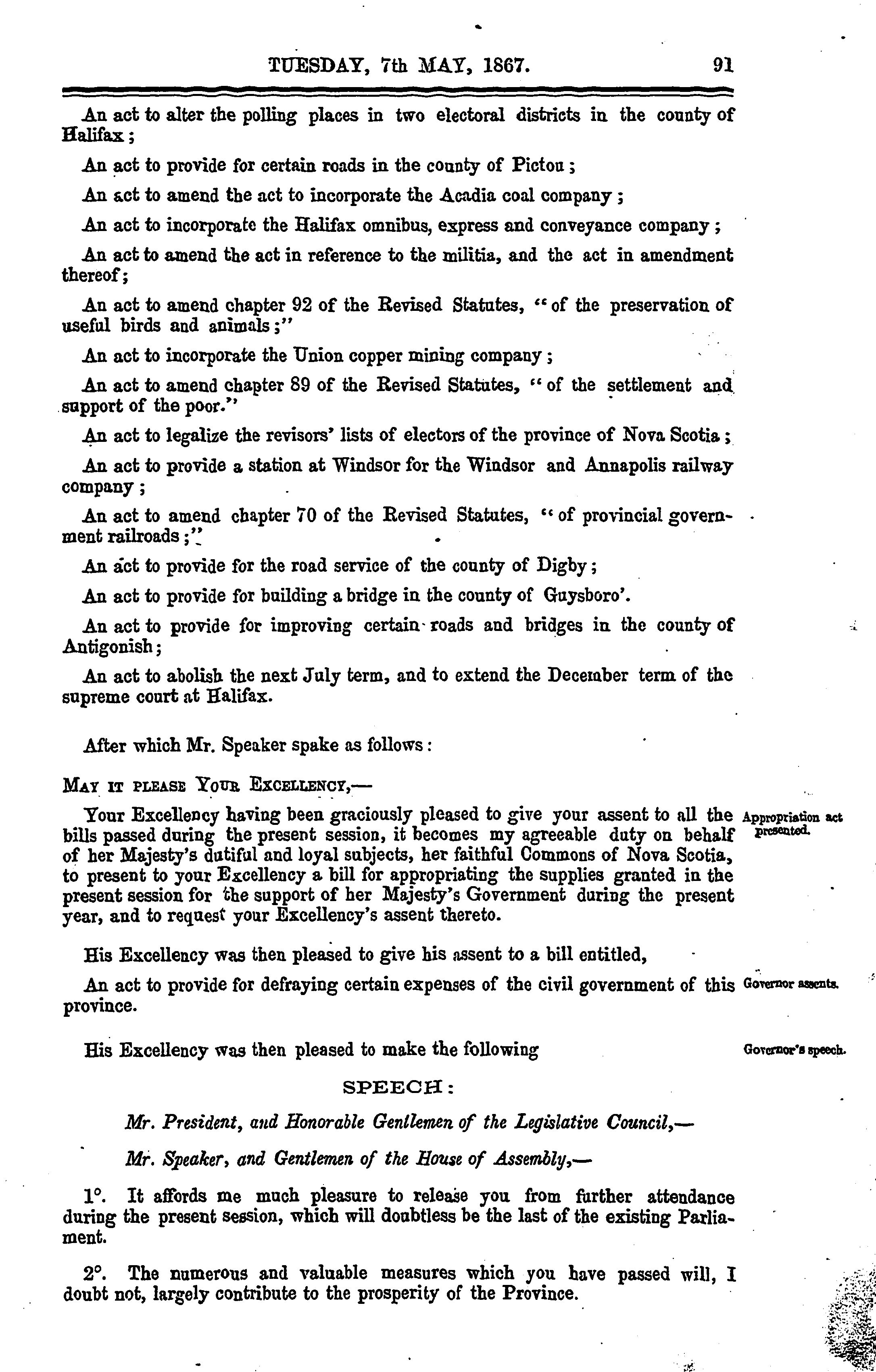 Journal and proceedings of the House of Assembly of the province of Nova Scotia, Session 1867 : 1867