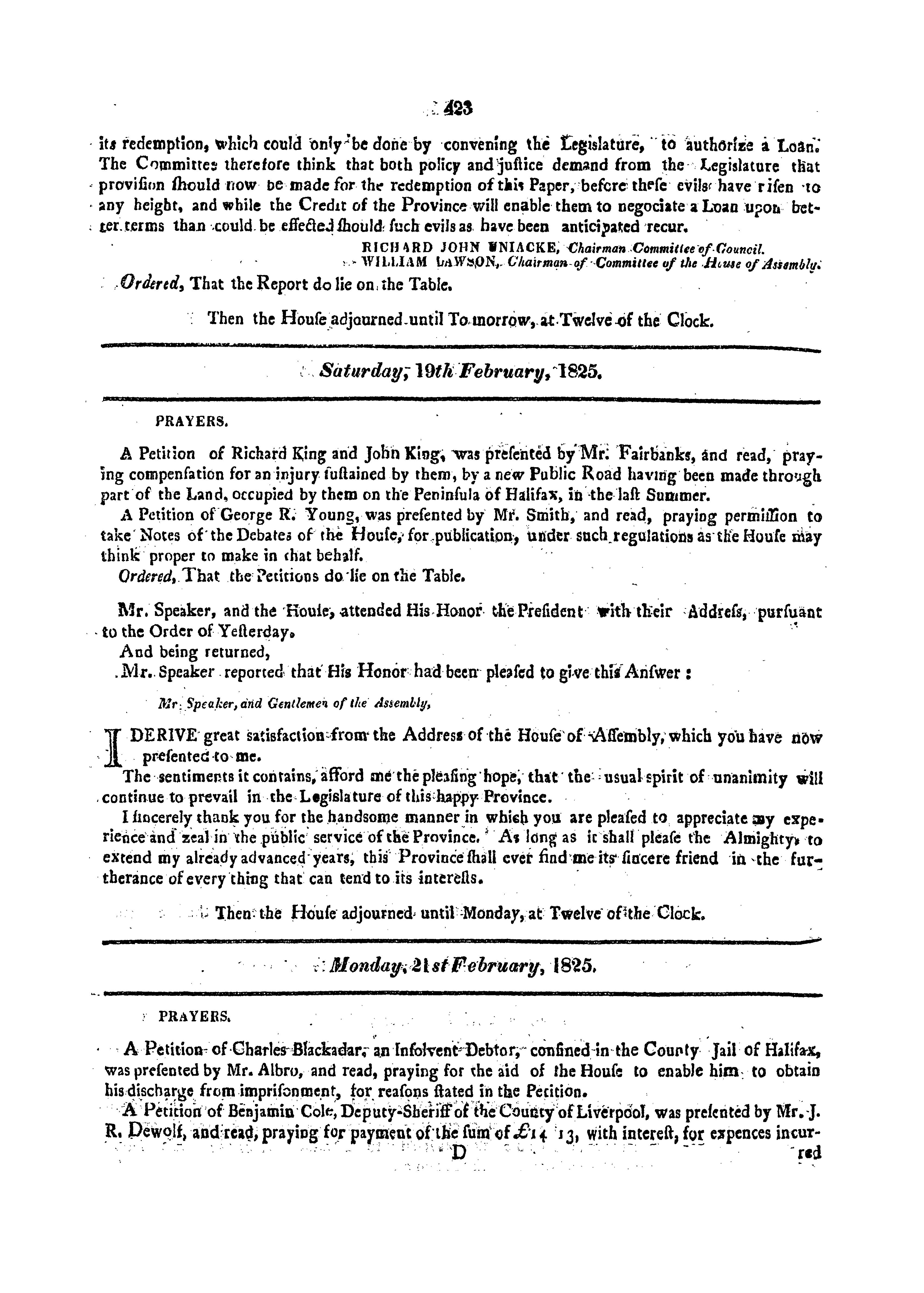 Journal and votes of the House of Assembly for the province of Nova Scotia : Journal and proceedings of the House of Assembly, 1825 : 1825