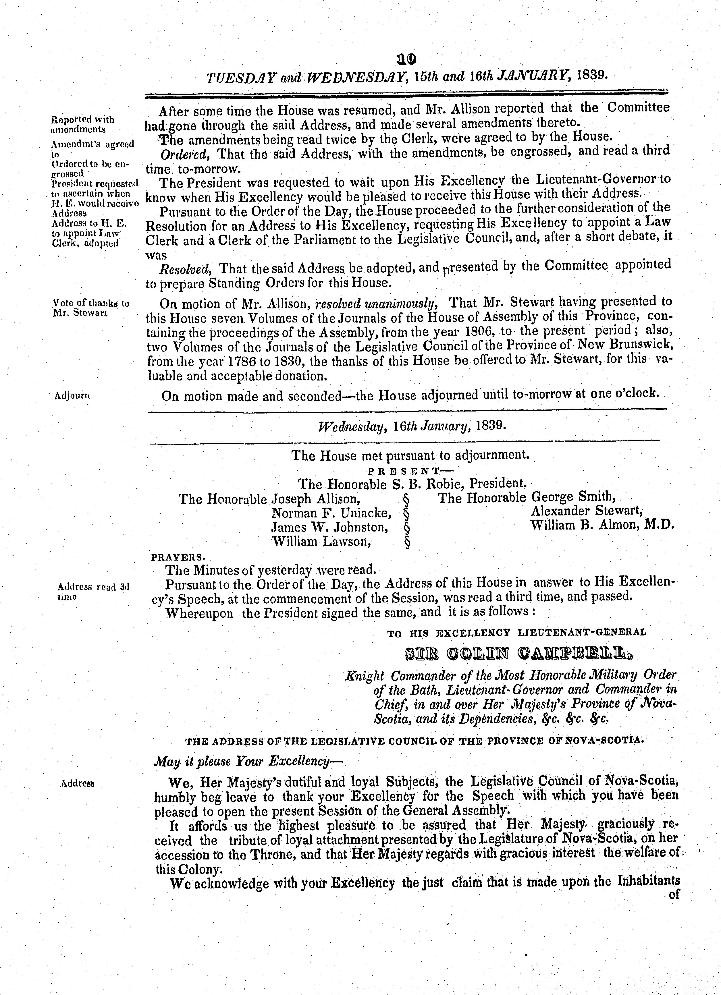 Journal and proceedings of Her Majesty's Legislative Council of the province of Nova-Scotia : Journal and proceedings of Her Majesty's Legislative Council of the province of Nova-Scotia, 1839 : 1839