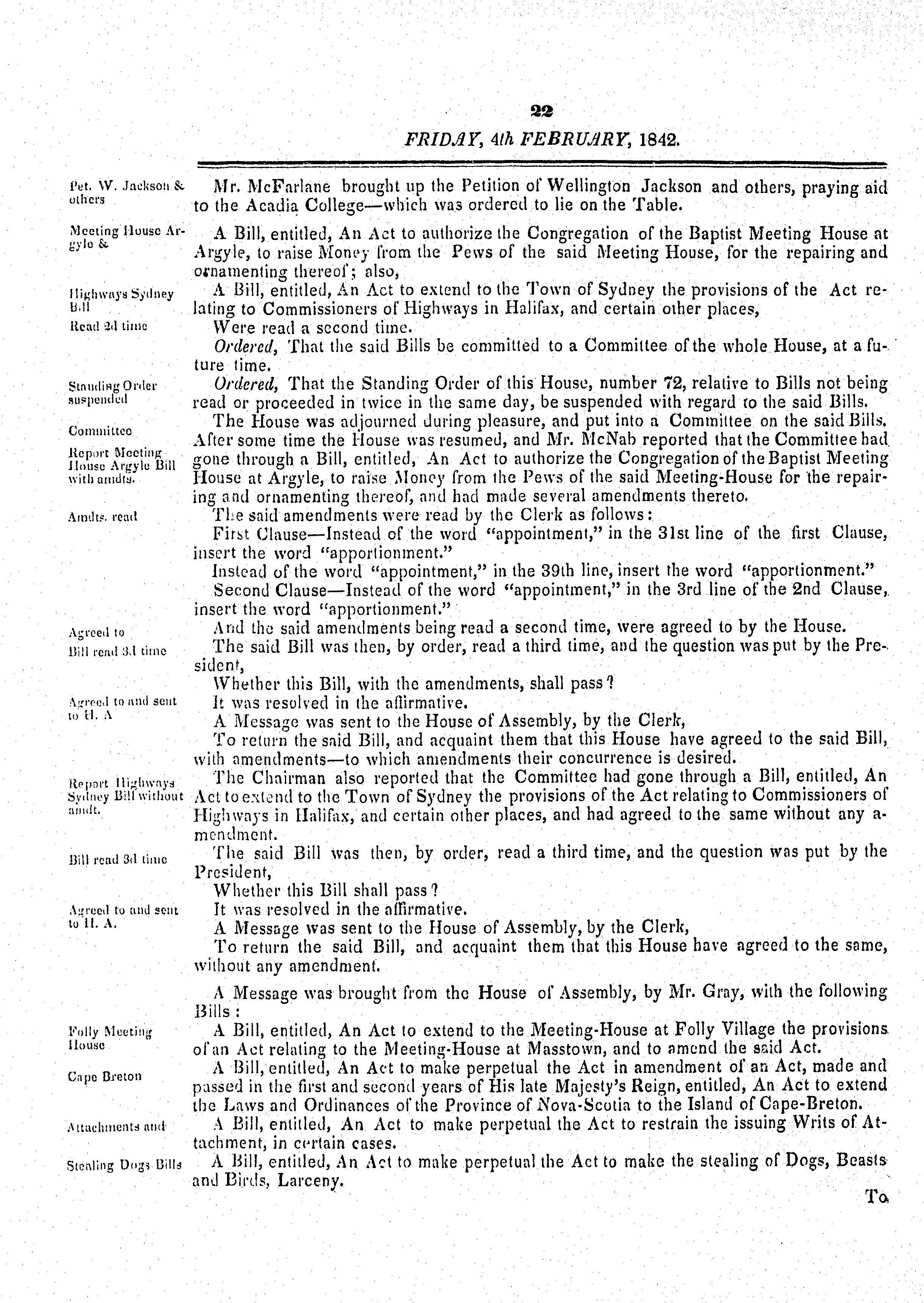 - Journal and proceedings of Her Majesty's Legislative Council of the province of Nova Scotia, 1842 : 1842