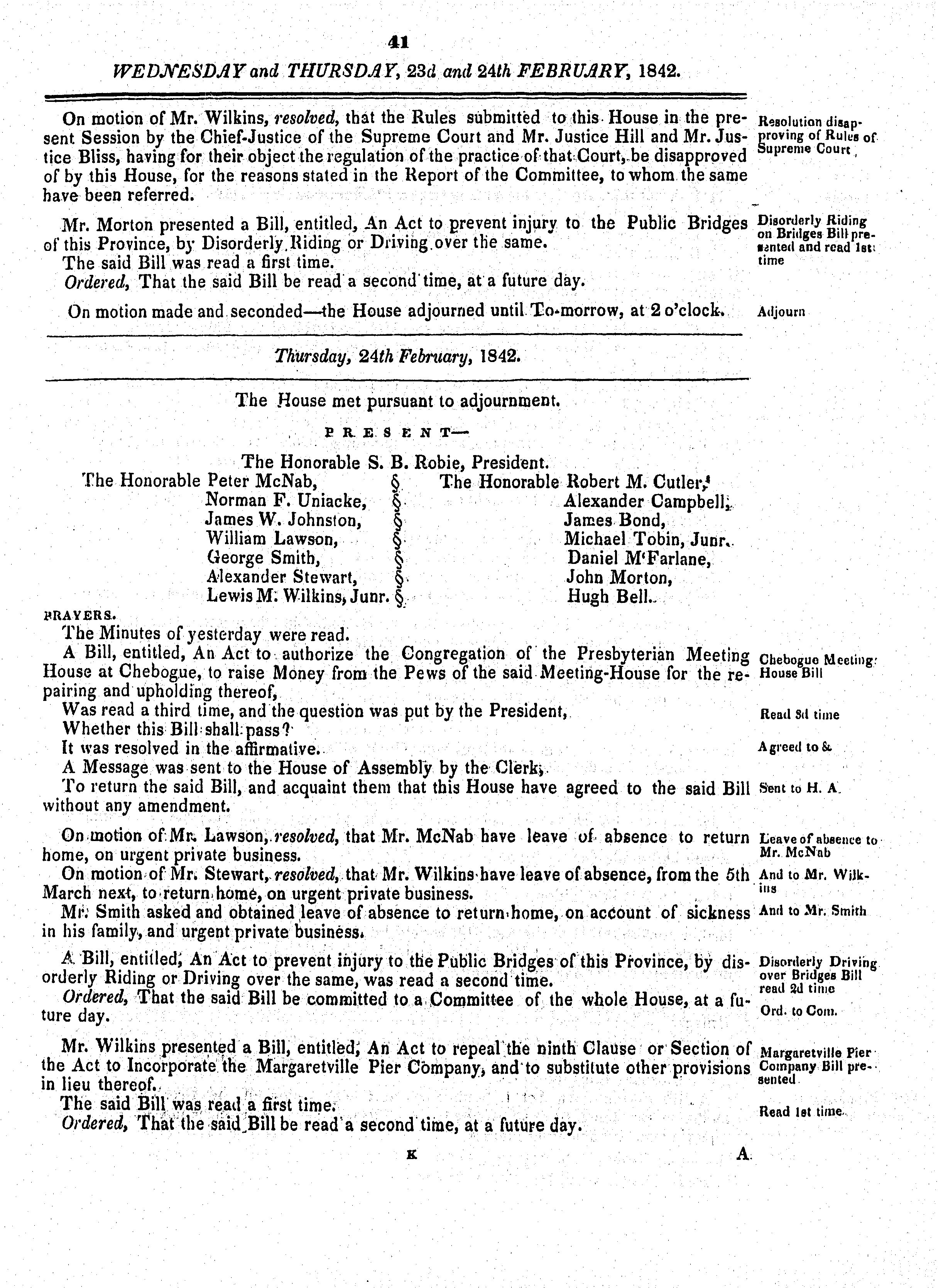 Journal and proceedings of Her Majesty's Legislative Council of the province of Nova-Scotia : Journal and proceedings of Her Majesty's Legislative Council of the province of Nova Scotia, 1842 : 1842