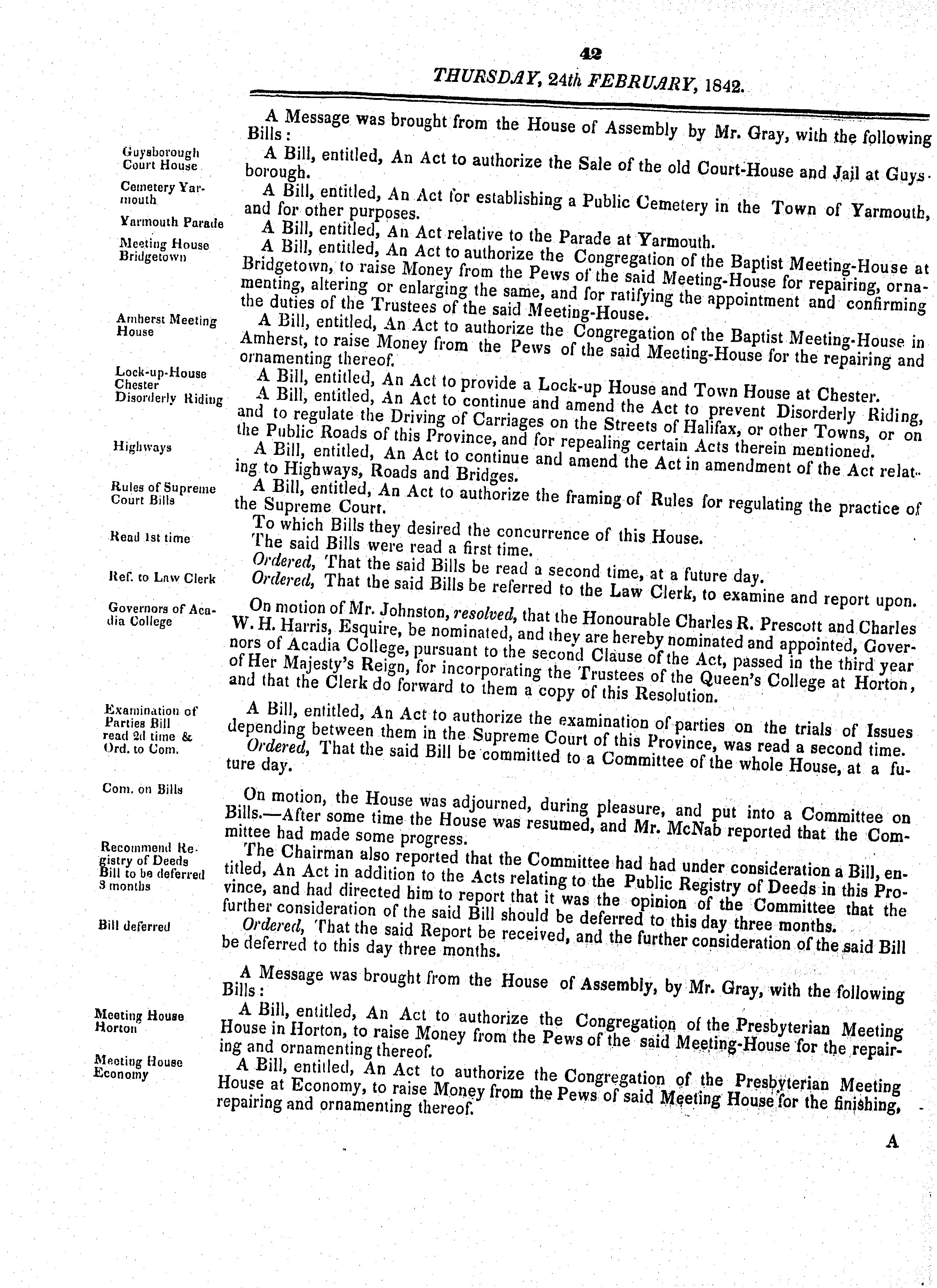Journal and proceedings of Her Majesty's Legislative Council of the province of Nova Scotia, 1842 : 1842