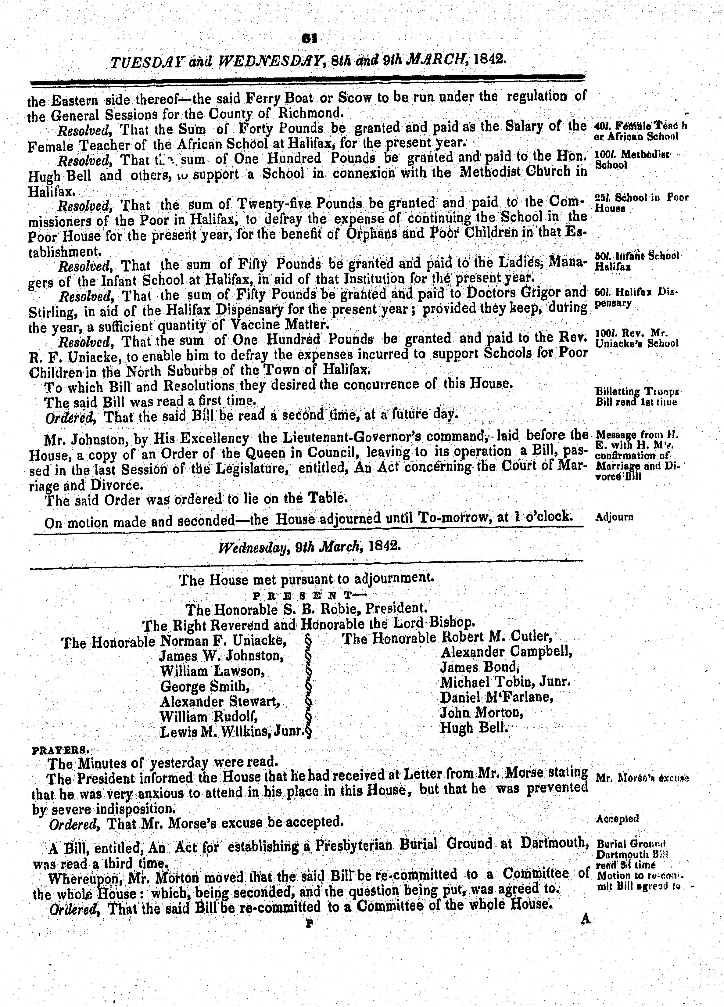 - Journal and proceedings of Her Majesty's Legislative Council of the province of Nova Scotia, 1842 : 1842