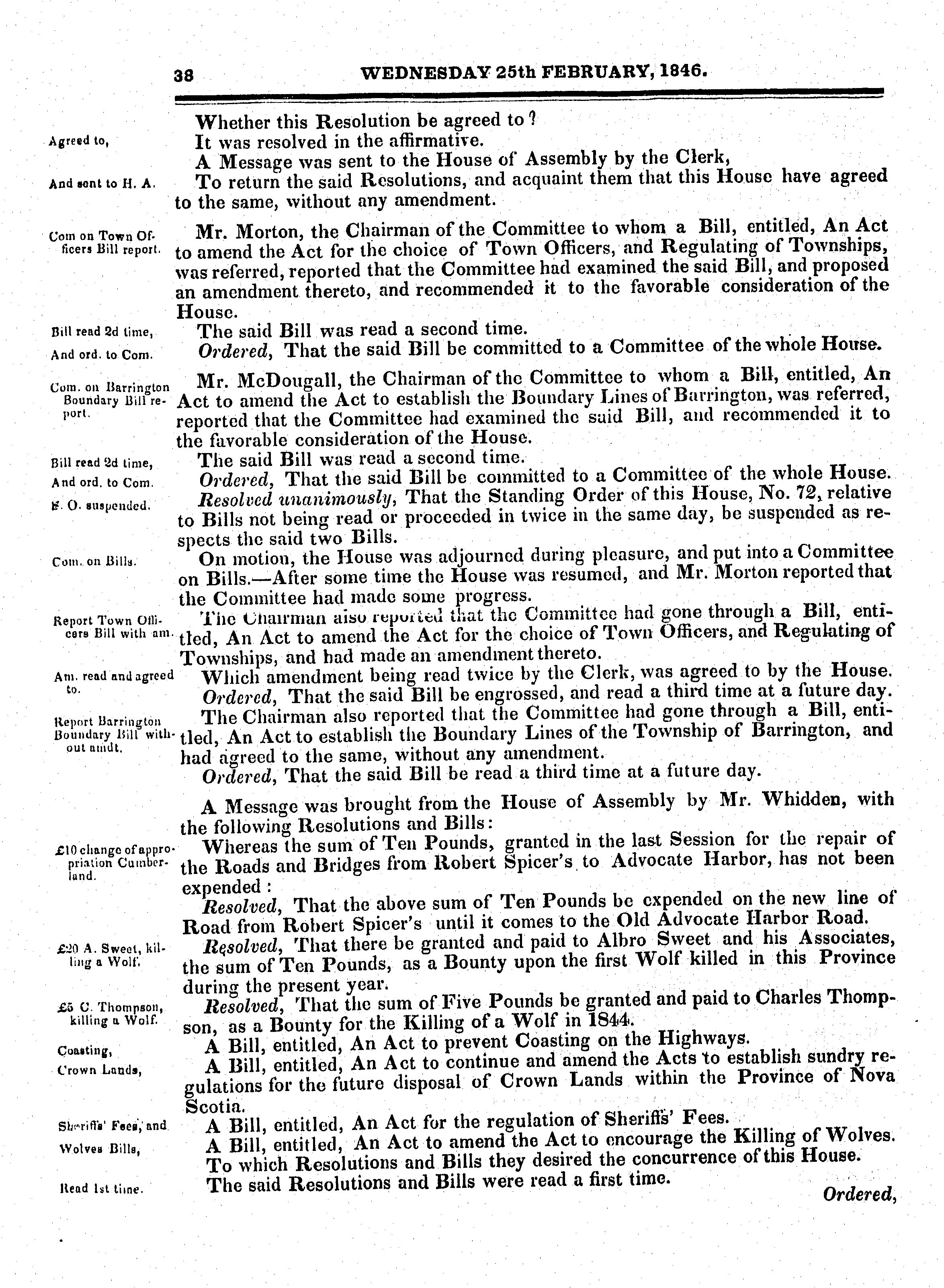 Journal and proceedings of Her Majesty's Legislative Council of the province of Nova-Scotia : Journal of the proceedings of Her Majesty's Legislative Council of the province of Nova-Scotia for the session of 1846 : 1846