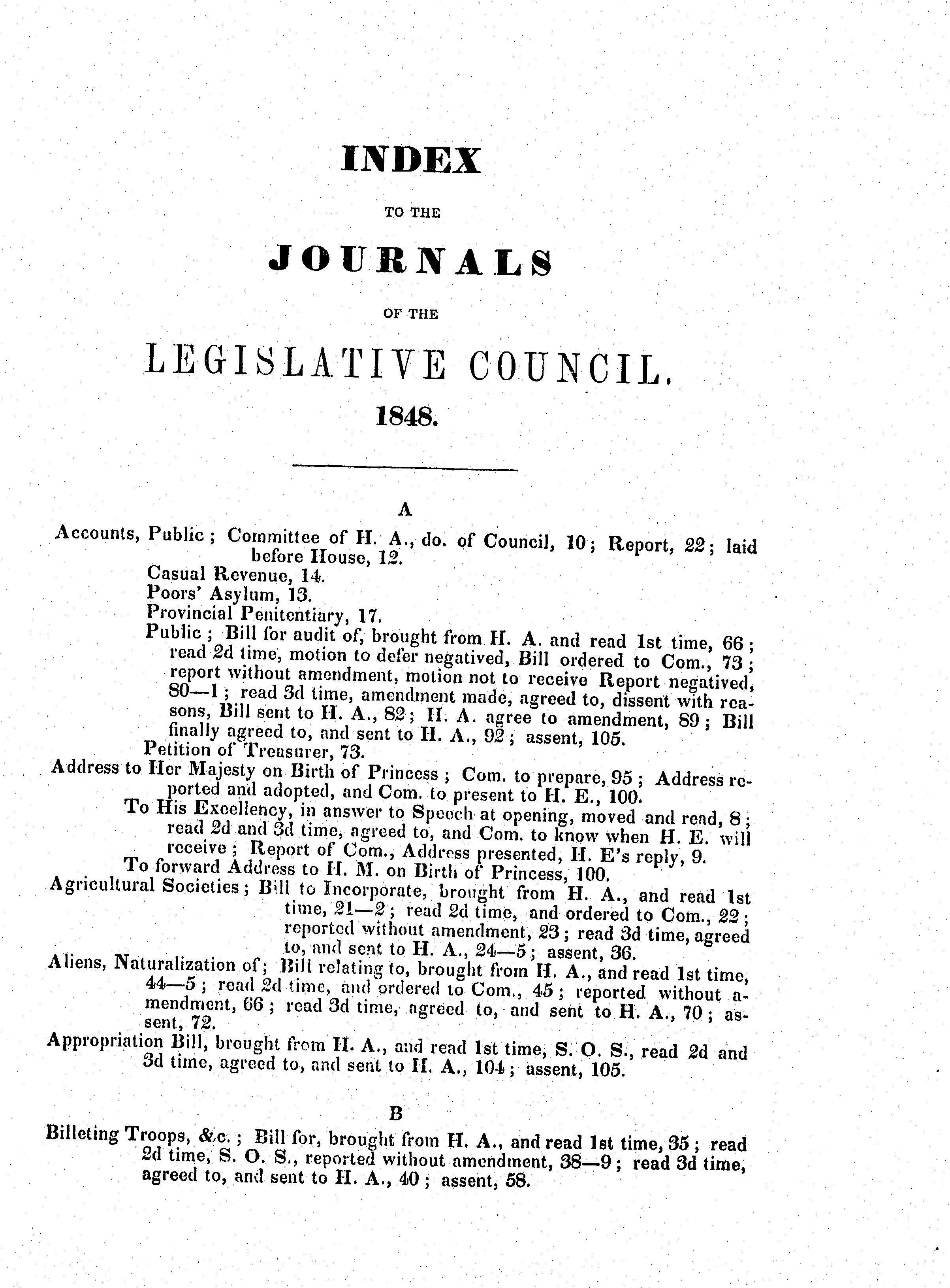 Journal and proceedings of Her Majesty's Legislative Council of the province of Nova-Scotia, 1848 : 1848