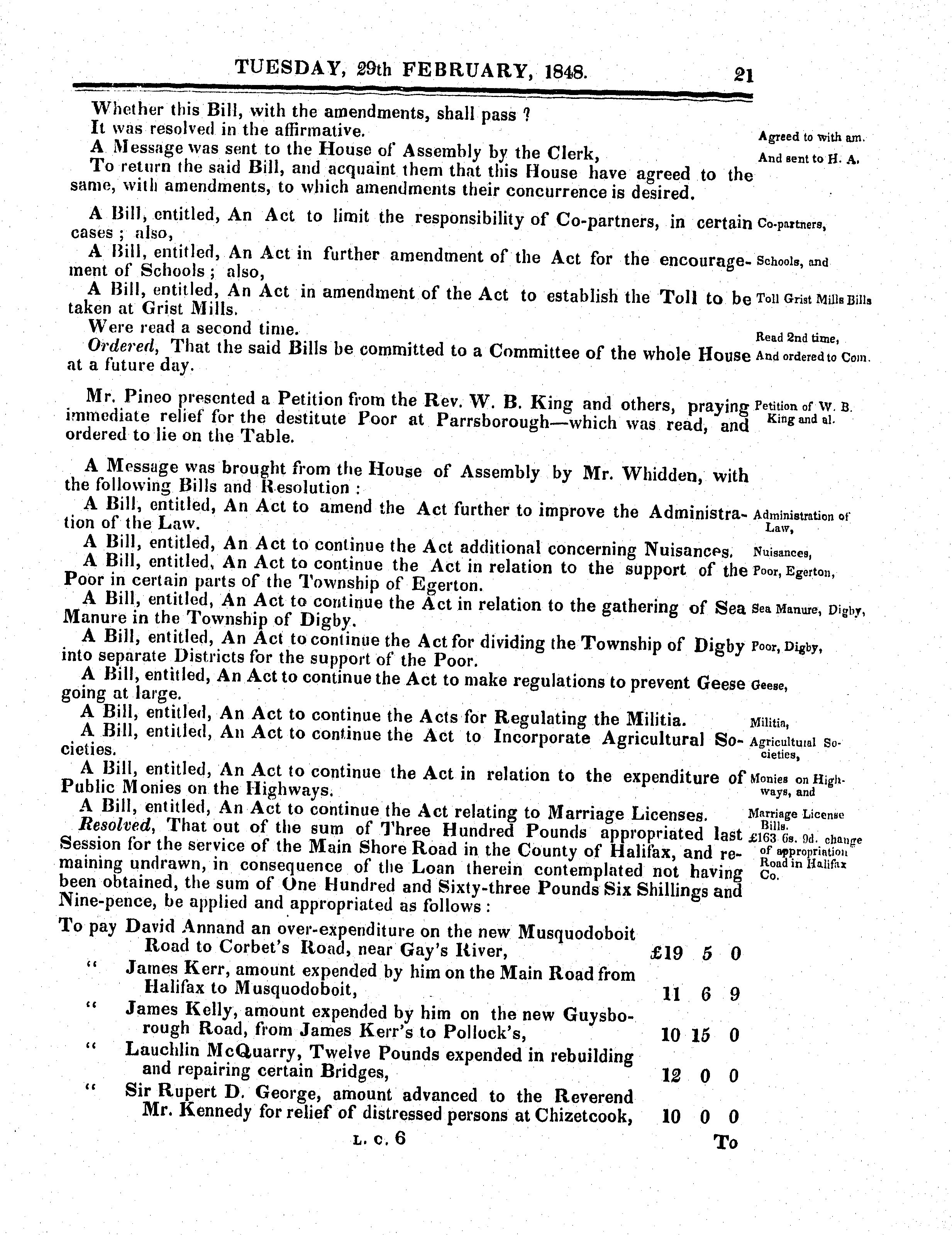 Journal and proceedings of Her Majesty's Legislative Council of the province of Nova-Scotia, 1848 : 1848