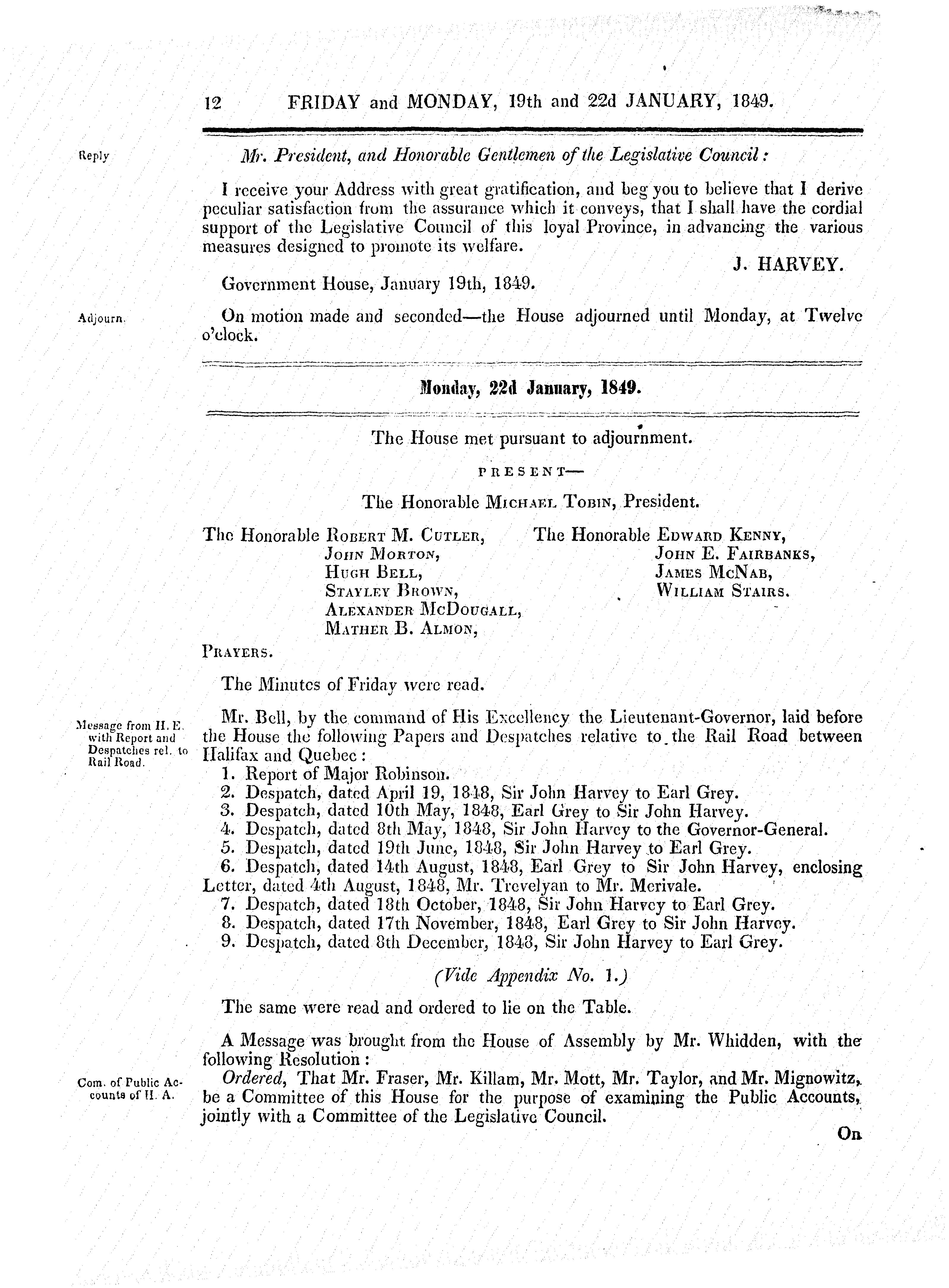 Journal and proceedings of Her Majesty's Legislative Council of the province of Nova-Scotia, 1849 : 1849
