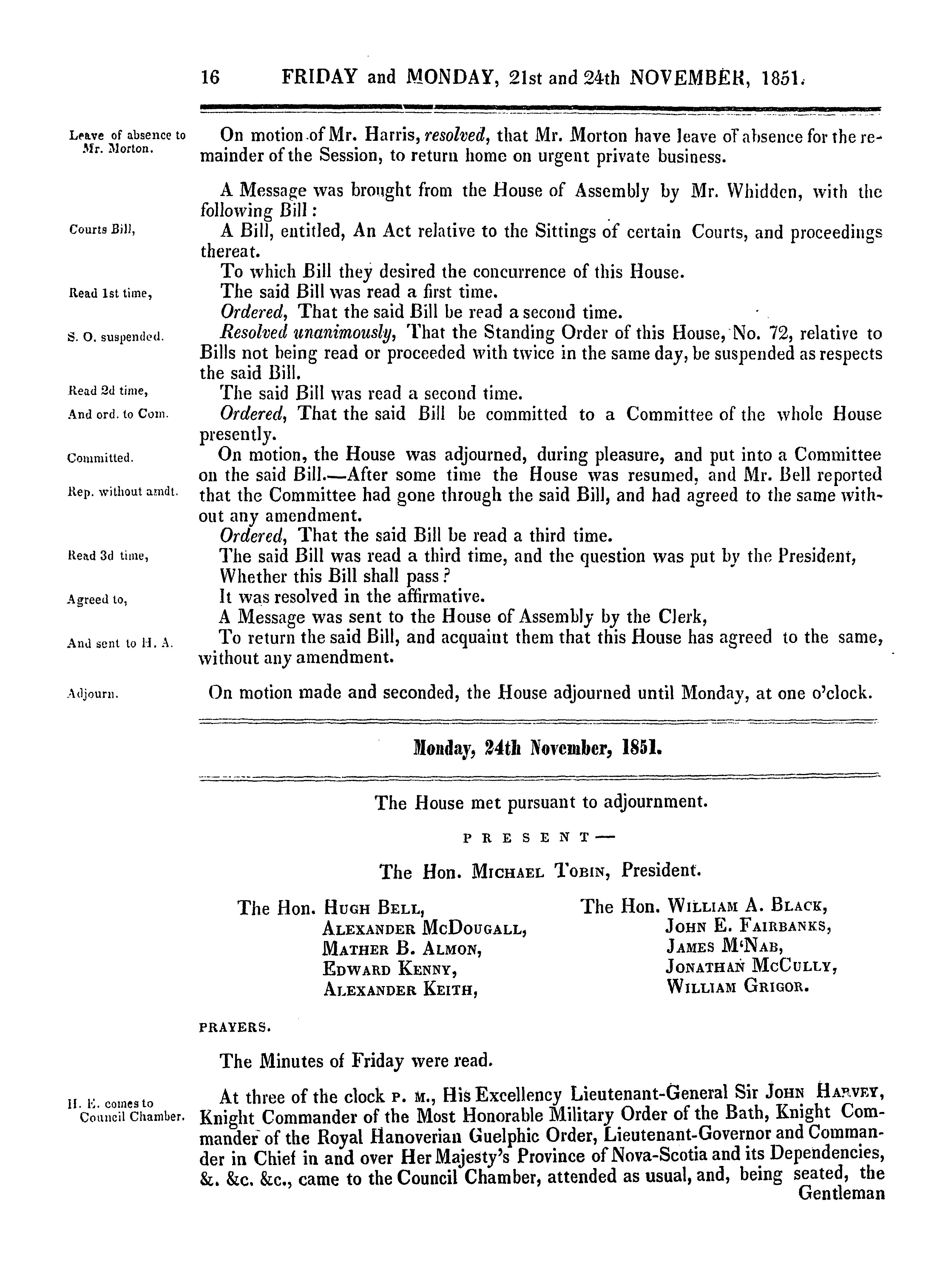 Journal and proceedings of Her Majesty's Legislative Council of the province of Nova-Scotia : Journal and proceedings of His Majesty's Council of the province of Nova-Scotia, 1851 : 1851