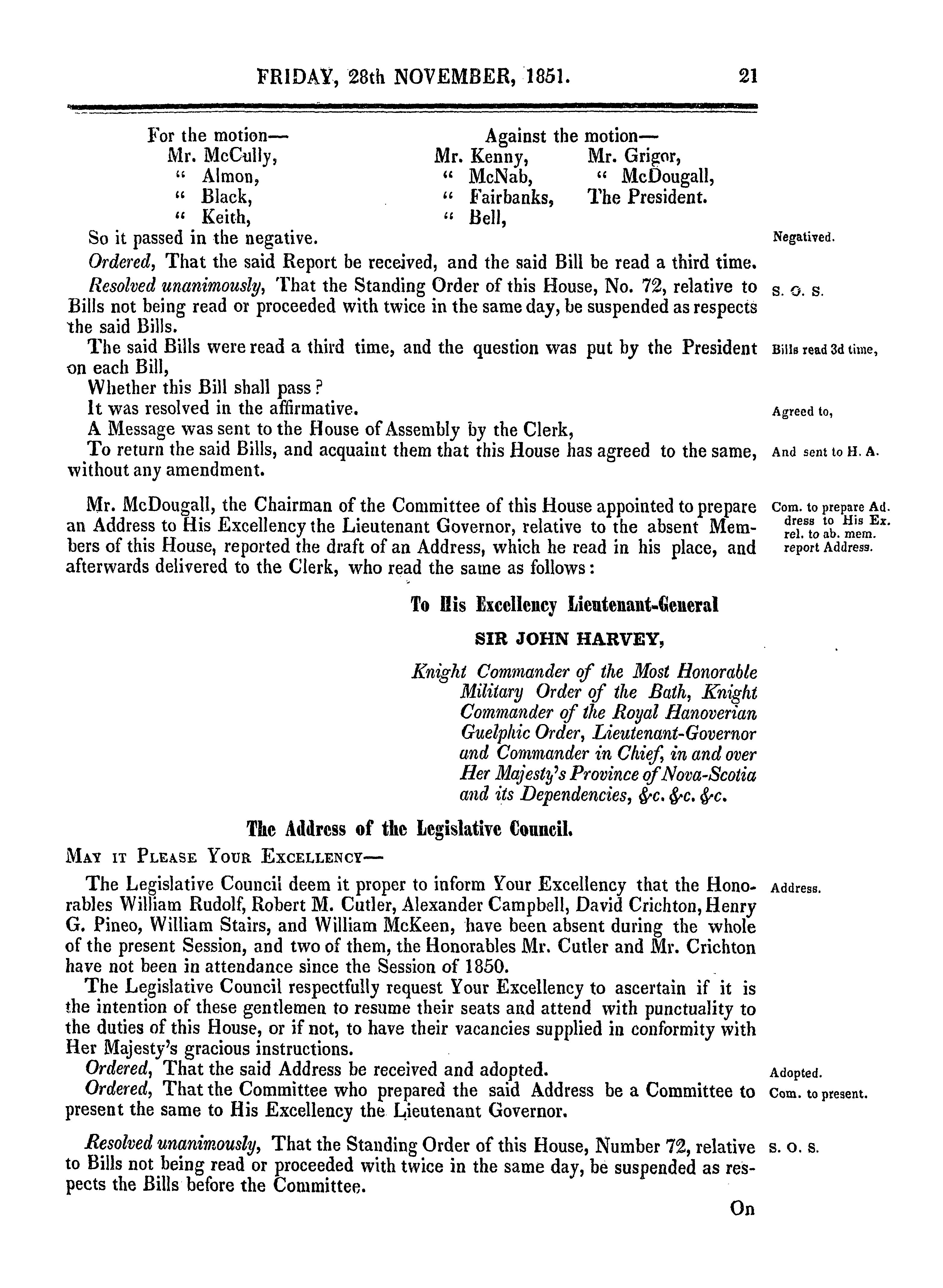 Journal and proceedings of Her Majesty's Legislative Council of the province of Nova-Scotia : Journal and proceedings of His Majesty's Council of the province of Nova-Scotia, 1851 : 1851