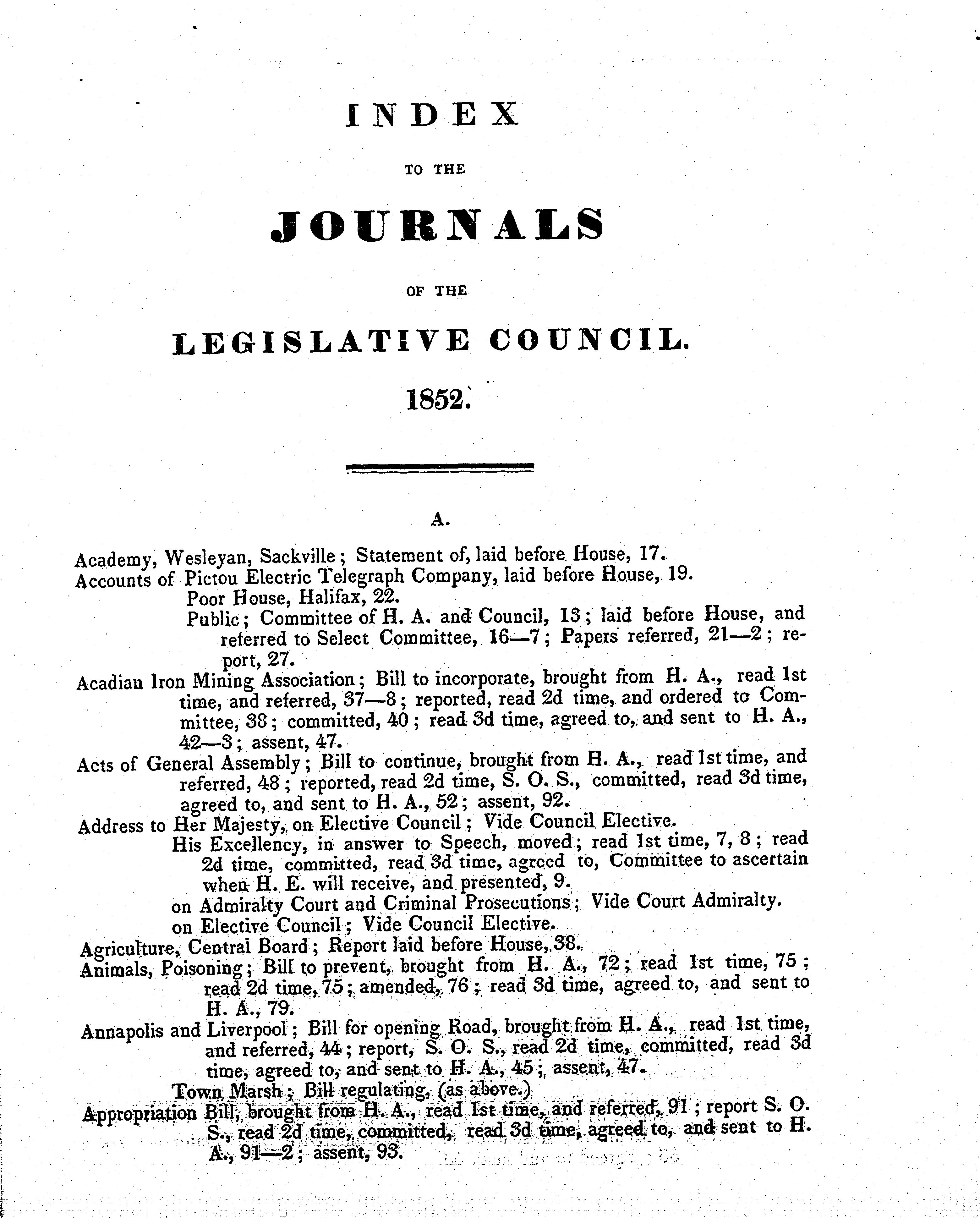 Journal and proceedings of Her Majesty's Legislative Council of the province of Nova-Scotia, 1852 : 1852