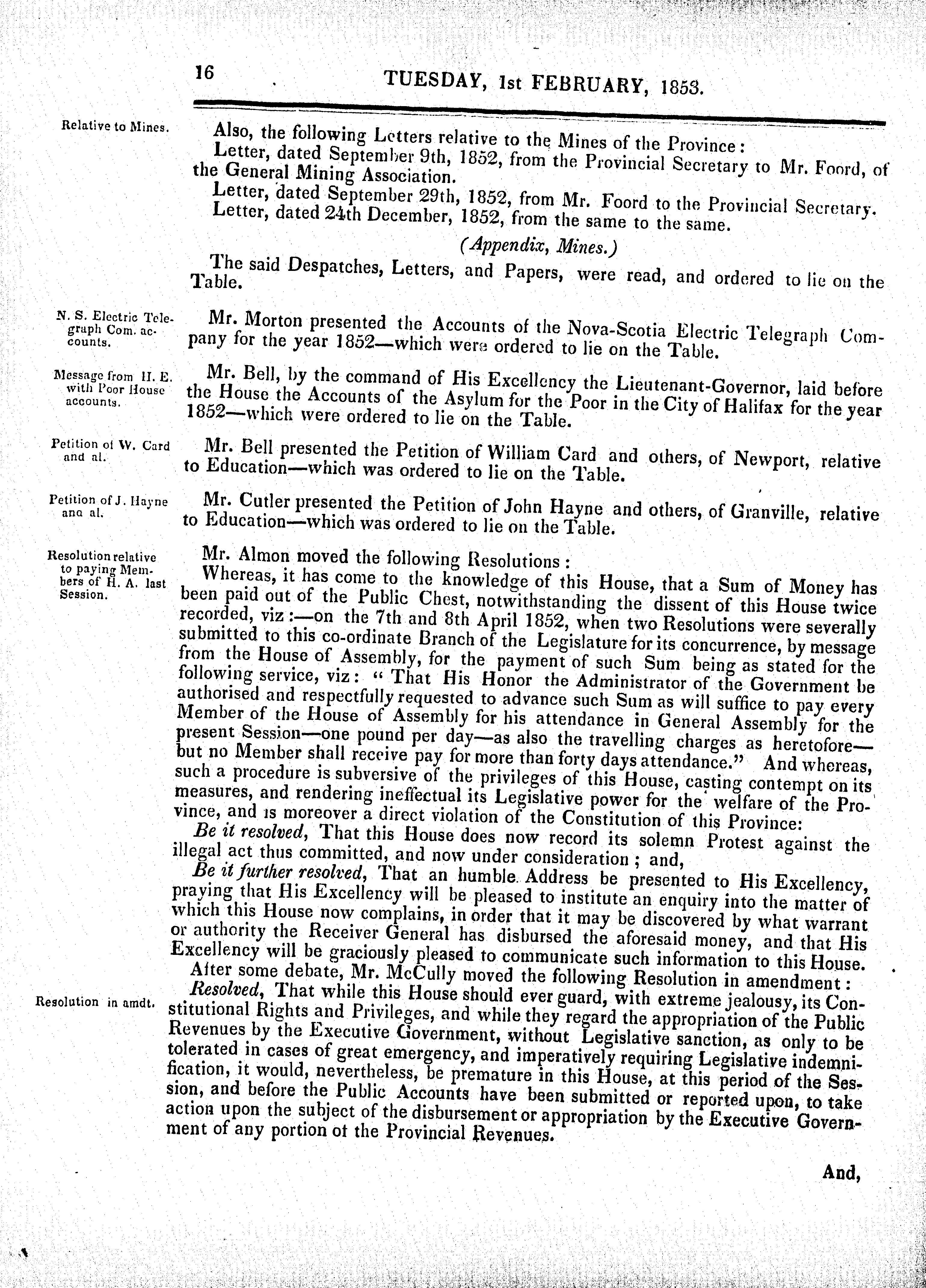 Journal and proceedings of Her Majesty's Legislative Council of the province of Nova-Scotia : Journal and proceedings of Her Majesty's Legislative Council of the province of Nova-Scotia, 1853 : 1853