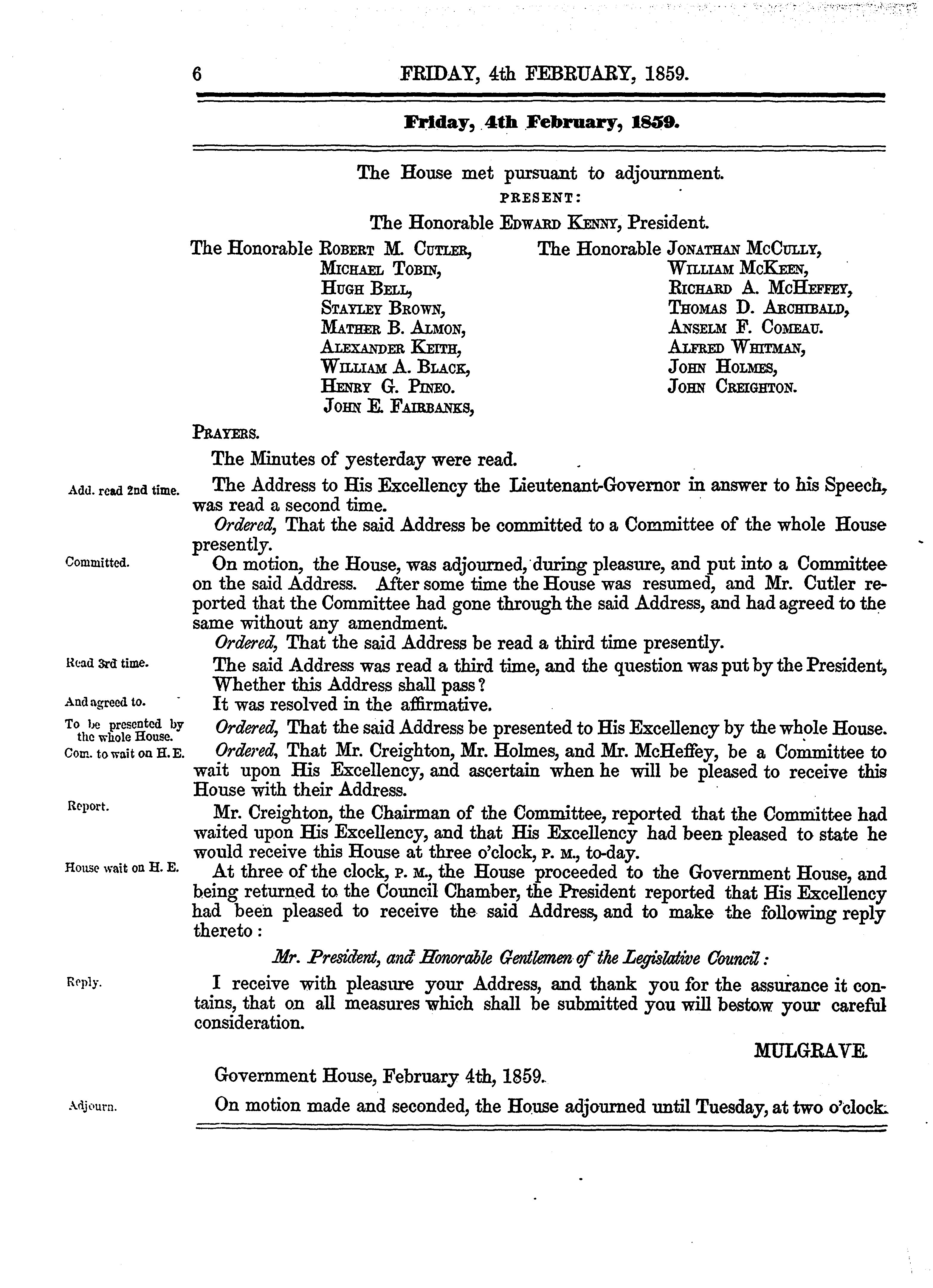 Journal and proceedings of Her Majesty's Legislative Council of the province of Nova-Scotia, 1859 : 1859