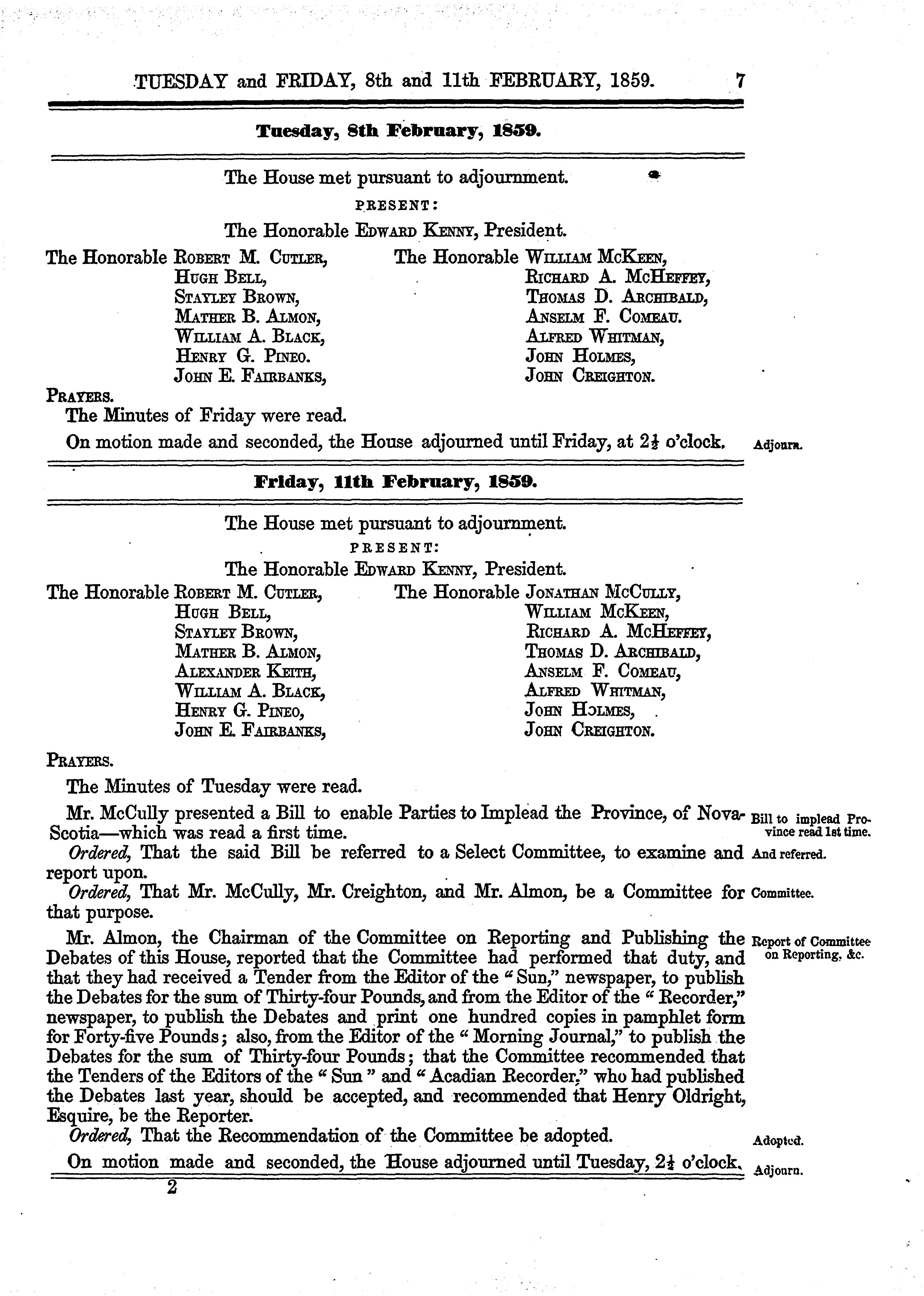 Journal and proceedings of Her Majesty's Legislative Council of the province of Nova-Scotia, 1859 : 1859