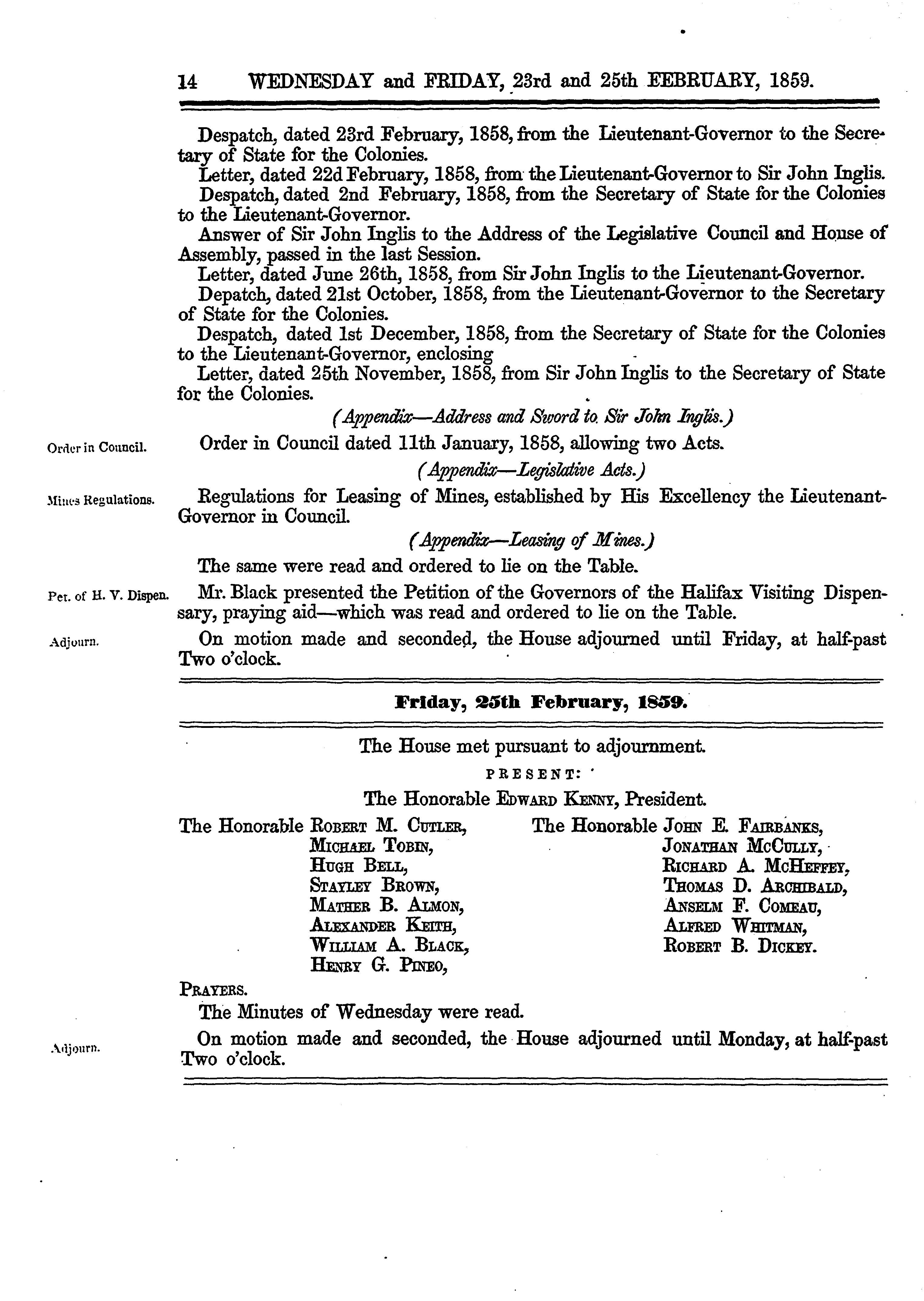 Journal and proceedings of Her Majesty's Legislative Council of the province of Nova-Scotia, 1859 : 1859