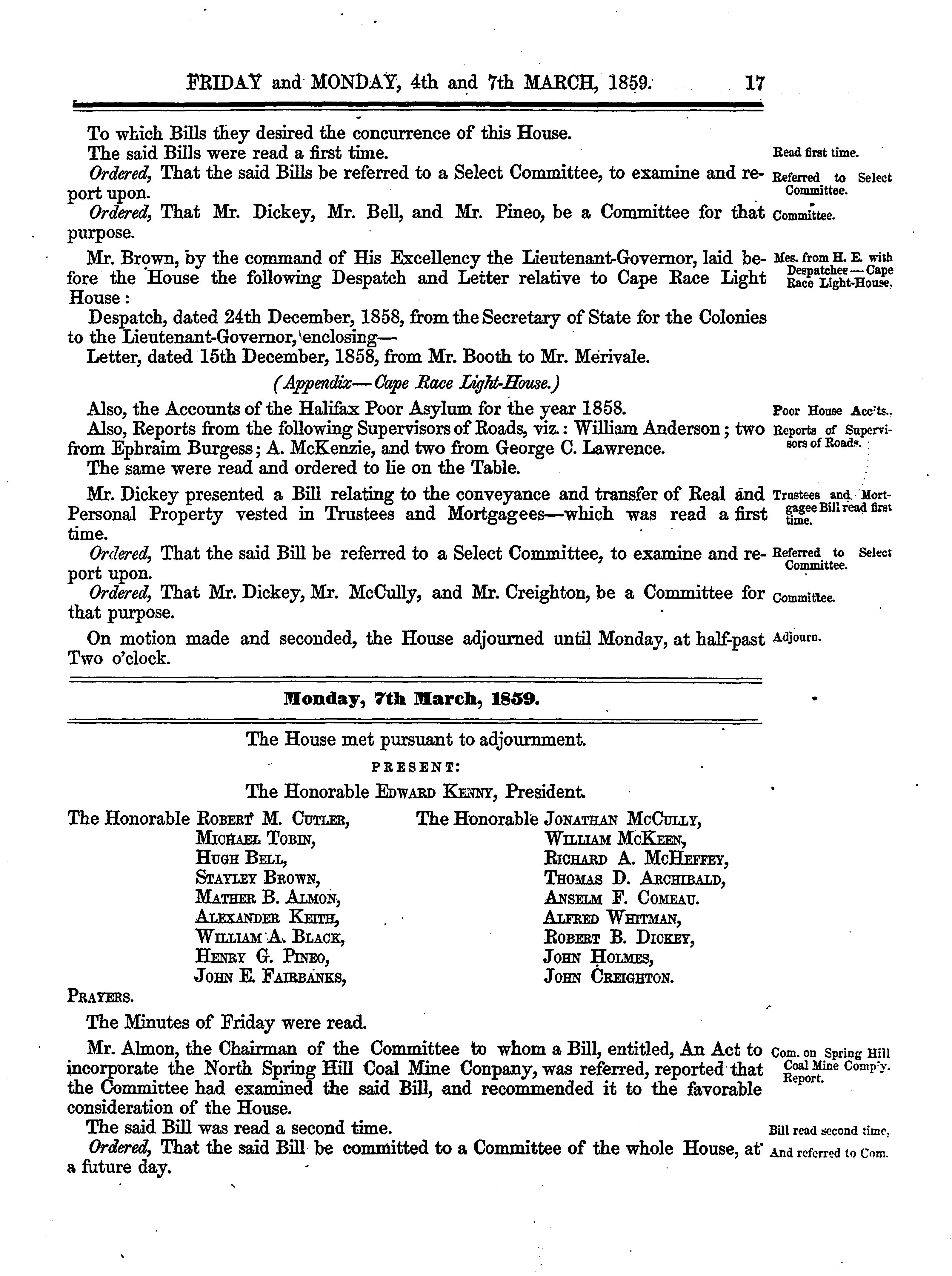 Journal and proceedings of Her Majesty's Legislative Council of the province of Nova-Scotia, 1859 : 1859