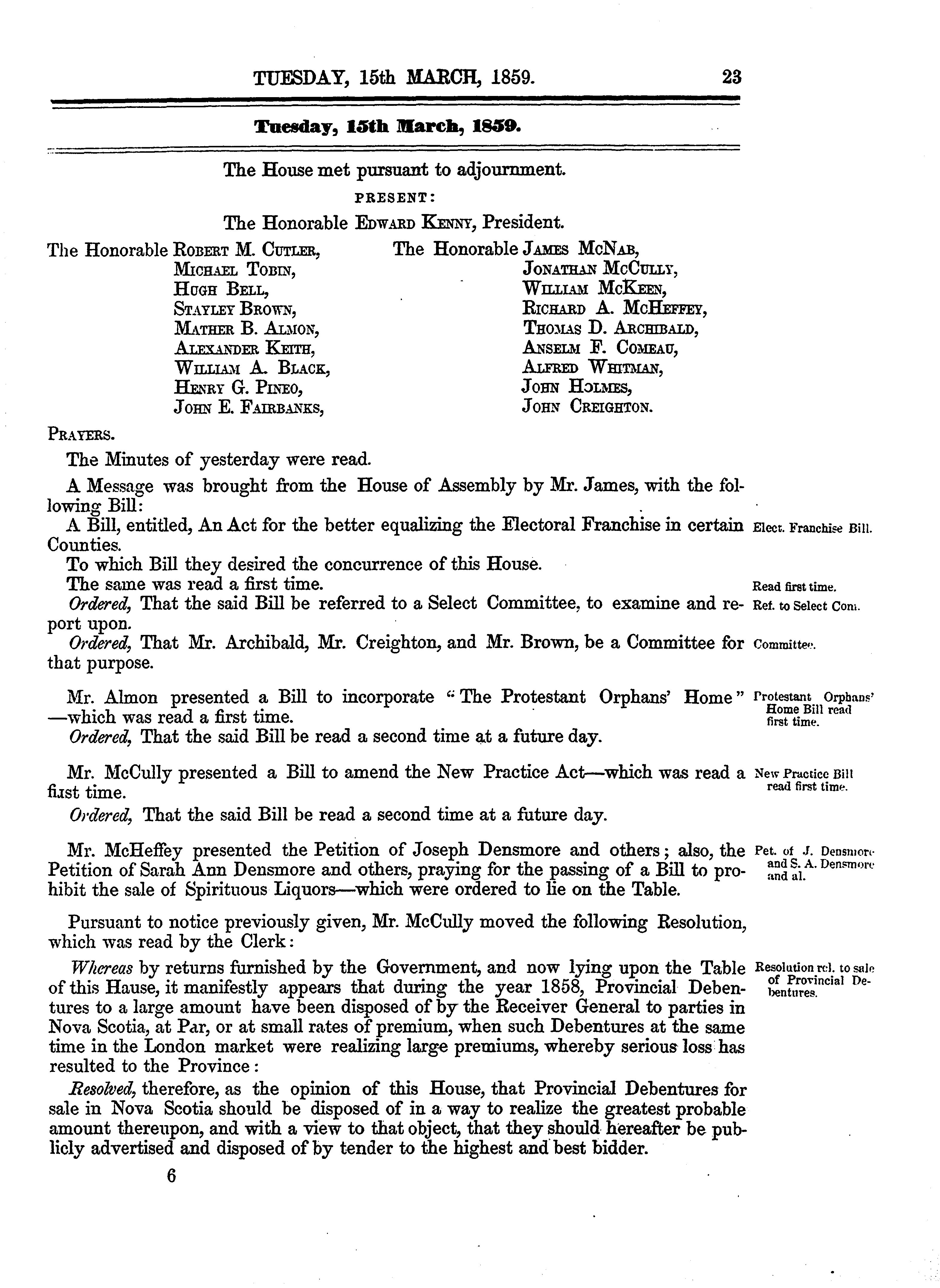 Journal and proceedings of Her Majesty's Legislative Council of the province of Nova-Scotia, 1859 : 1859