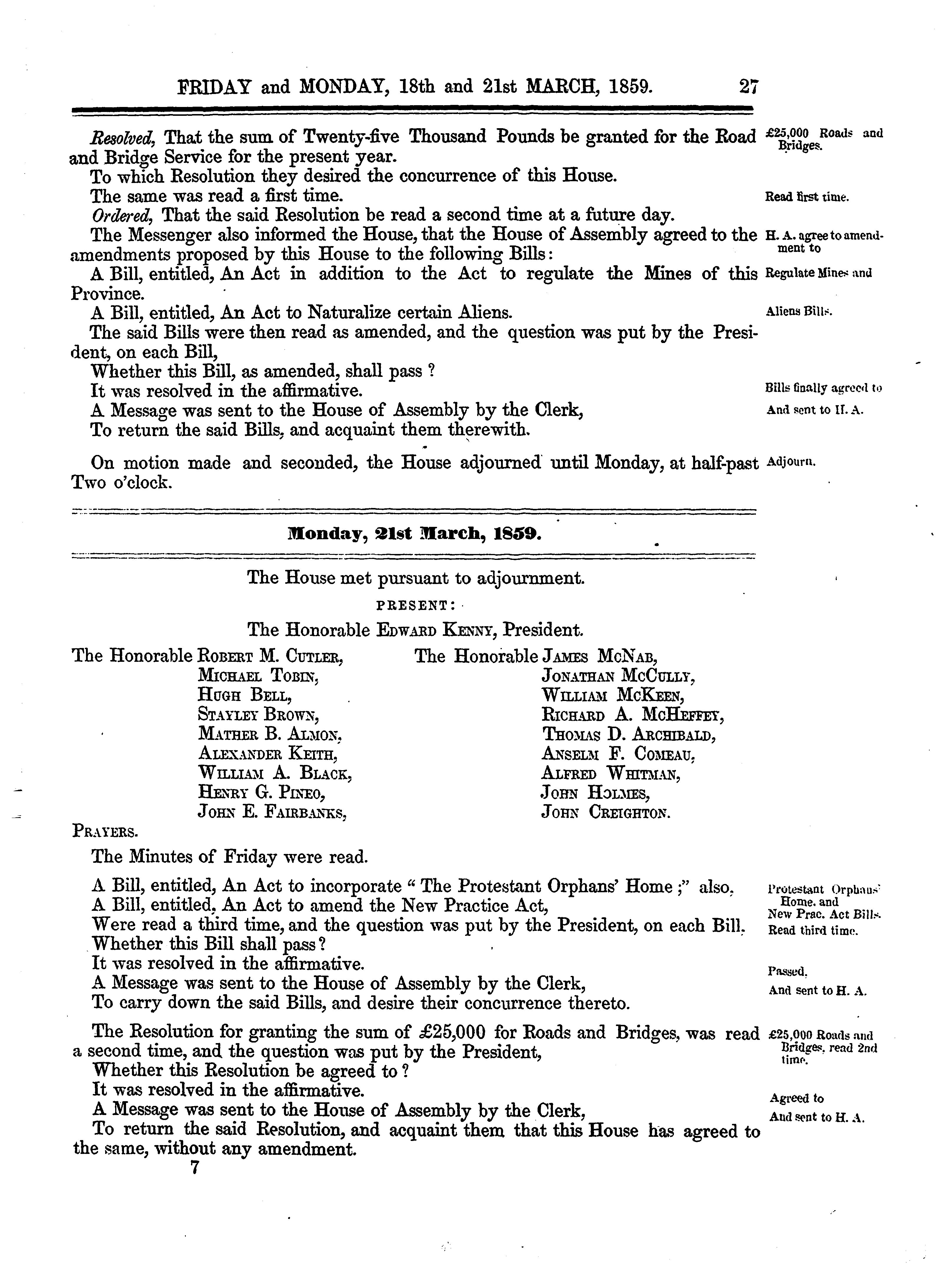 Journal and proceedings of Her Majesty's Legislative Council of the province of Nova-Scotia, 1859 : 1859