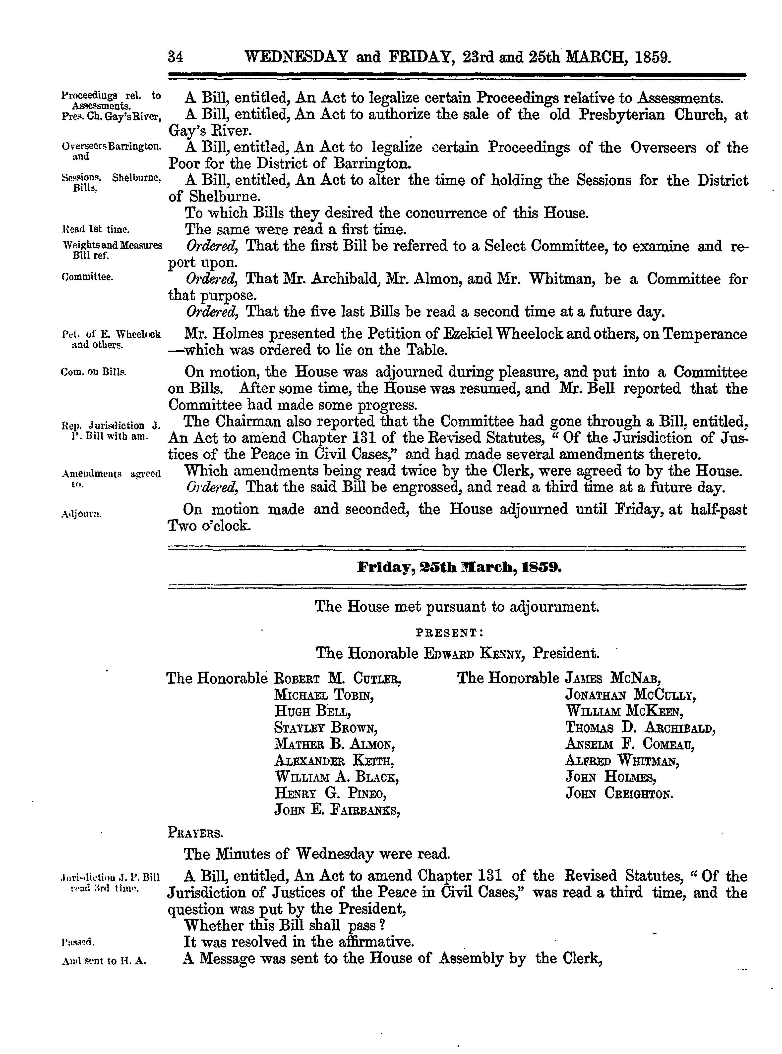 Journal and proceedings of Her Majesty's Legislative Council of the province of Nova-Scotia, 1859 : 1859
