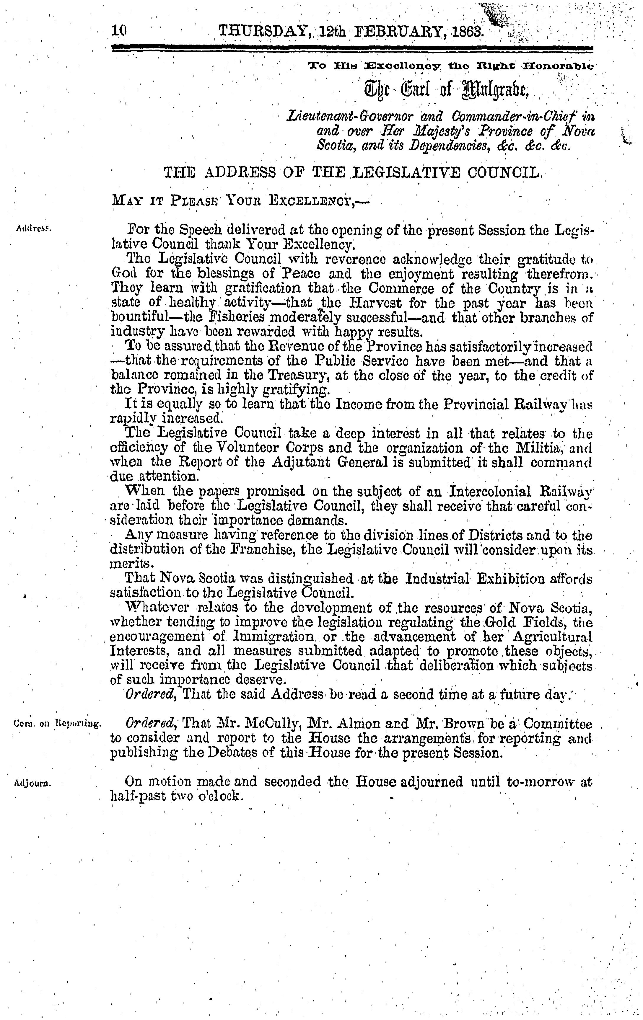 Journal and proceedings of Her Majesty's Legislative Council of the province of Nova Scotia : 1863