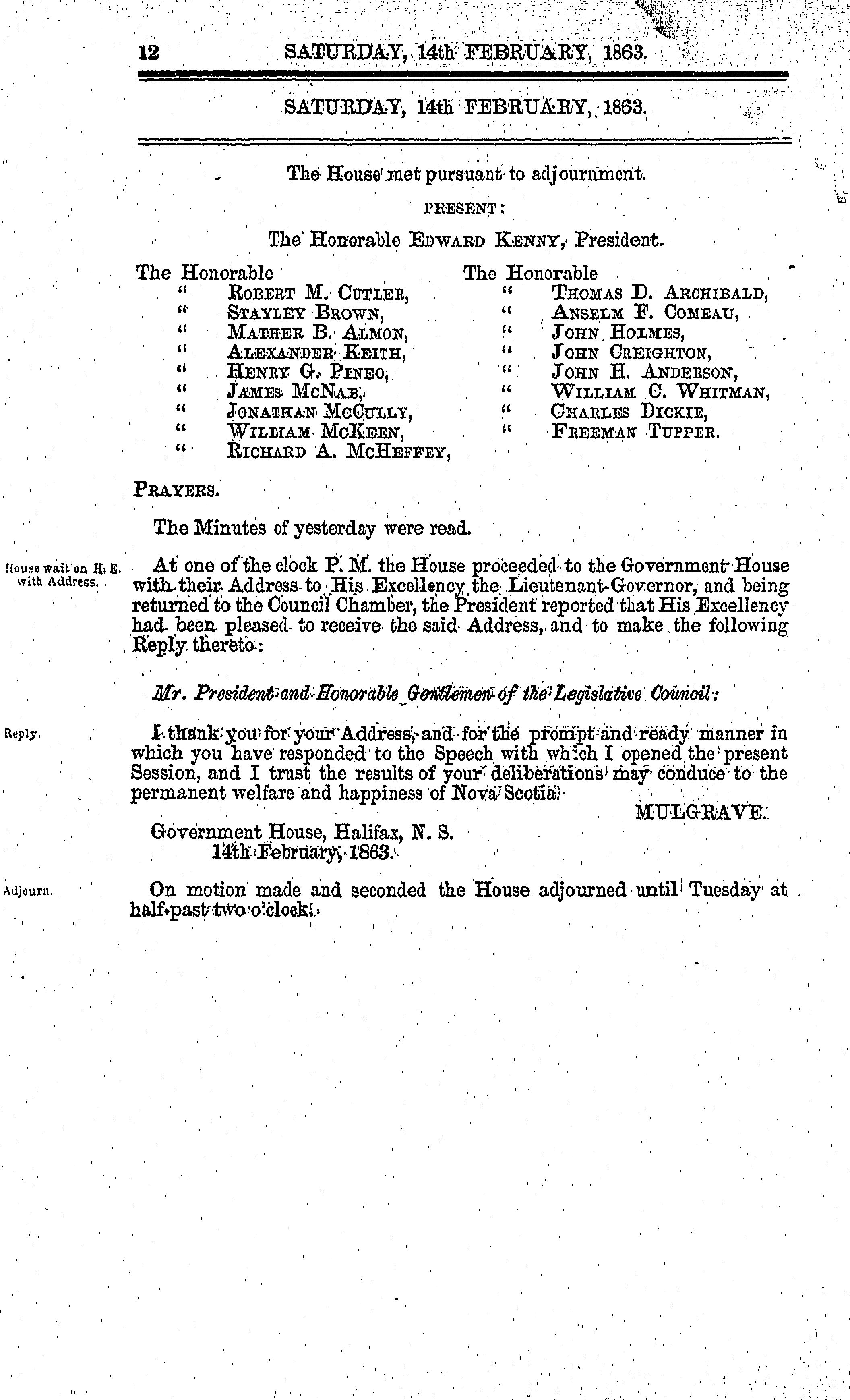 Journal and proceedings of Her Majesty's Legislative Council of the province of Nova-Scotia : Journal and proceedings of Her Majesty's Legislative Council of the province of Nova Scotia : 1863