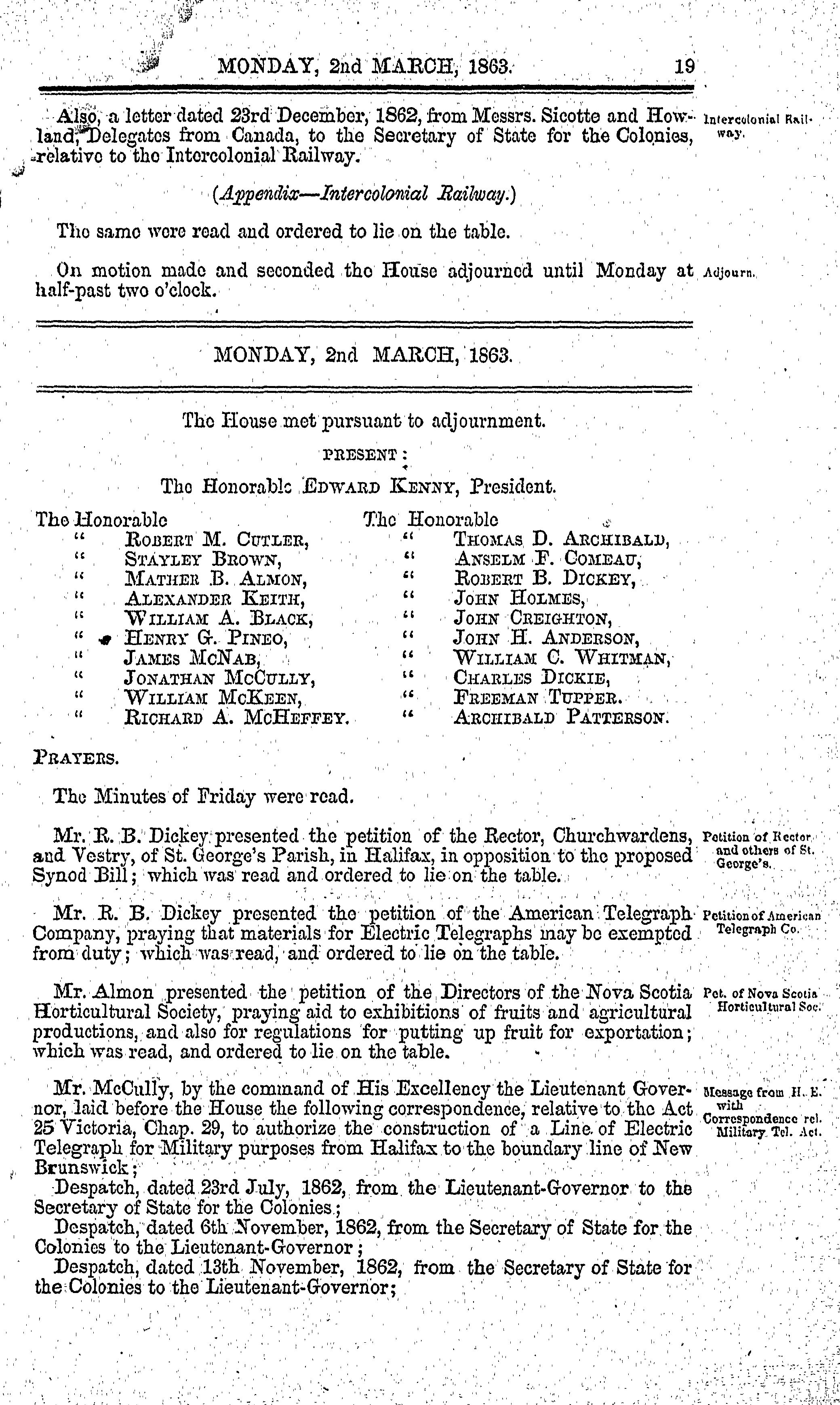 Journal and proceedings of Her Majesty's Legislative Council of the province of Nova-Scotia : Journal and proceedings of Her Majesty's Legislative Council of the province of Nova Scotia : 1863