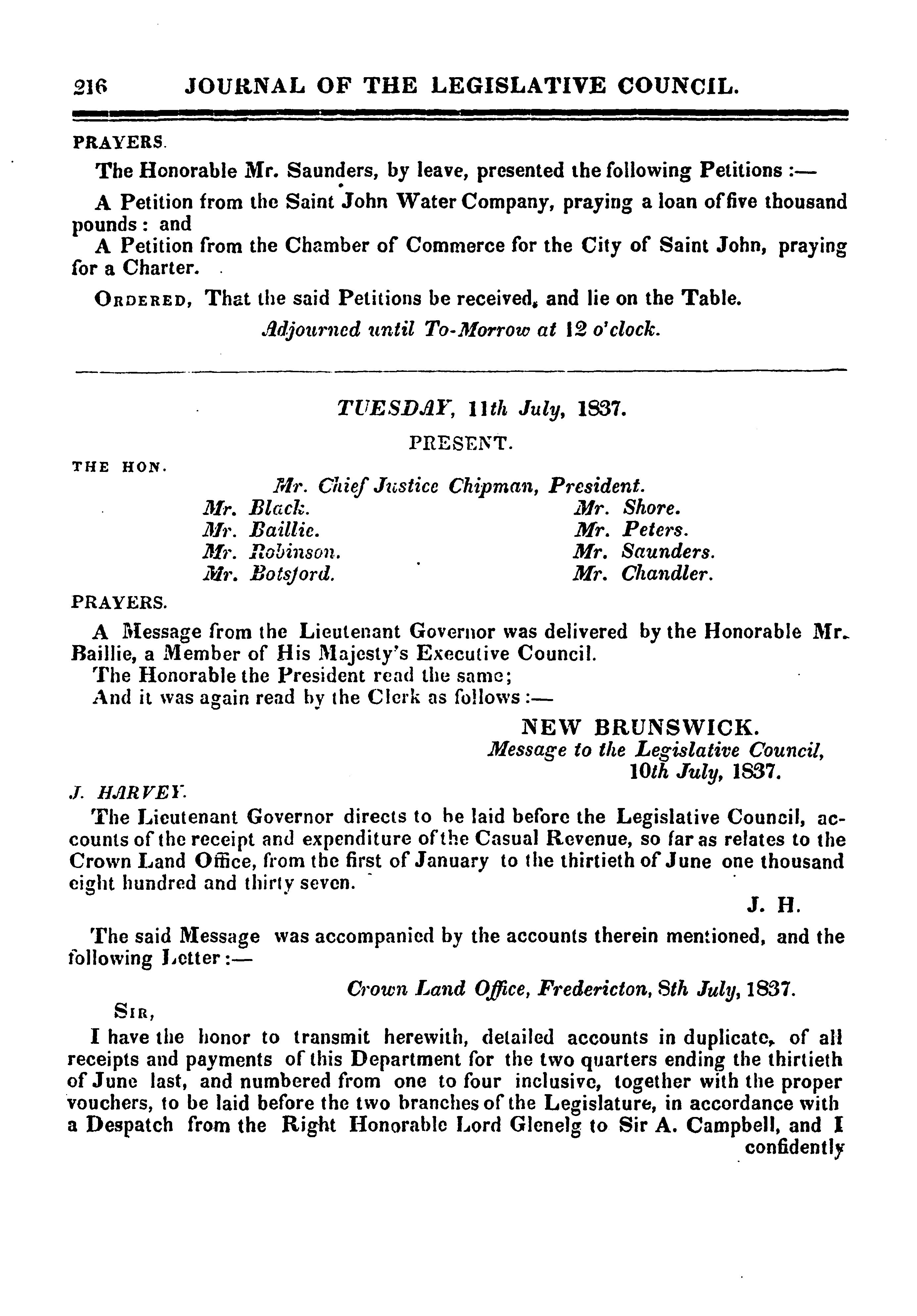 Journal of the Legislative Council ... of New Brunswick from 6th to 22d July, 1837 ... fifth session of the eleventh General Assembly : 1837