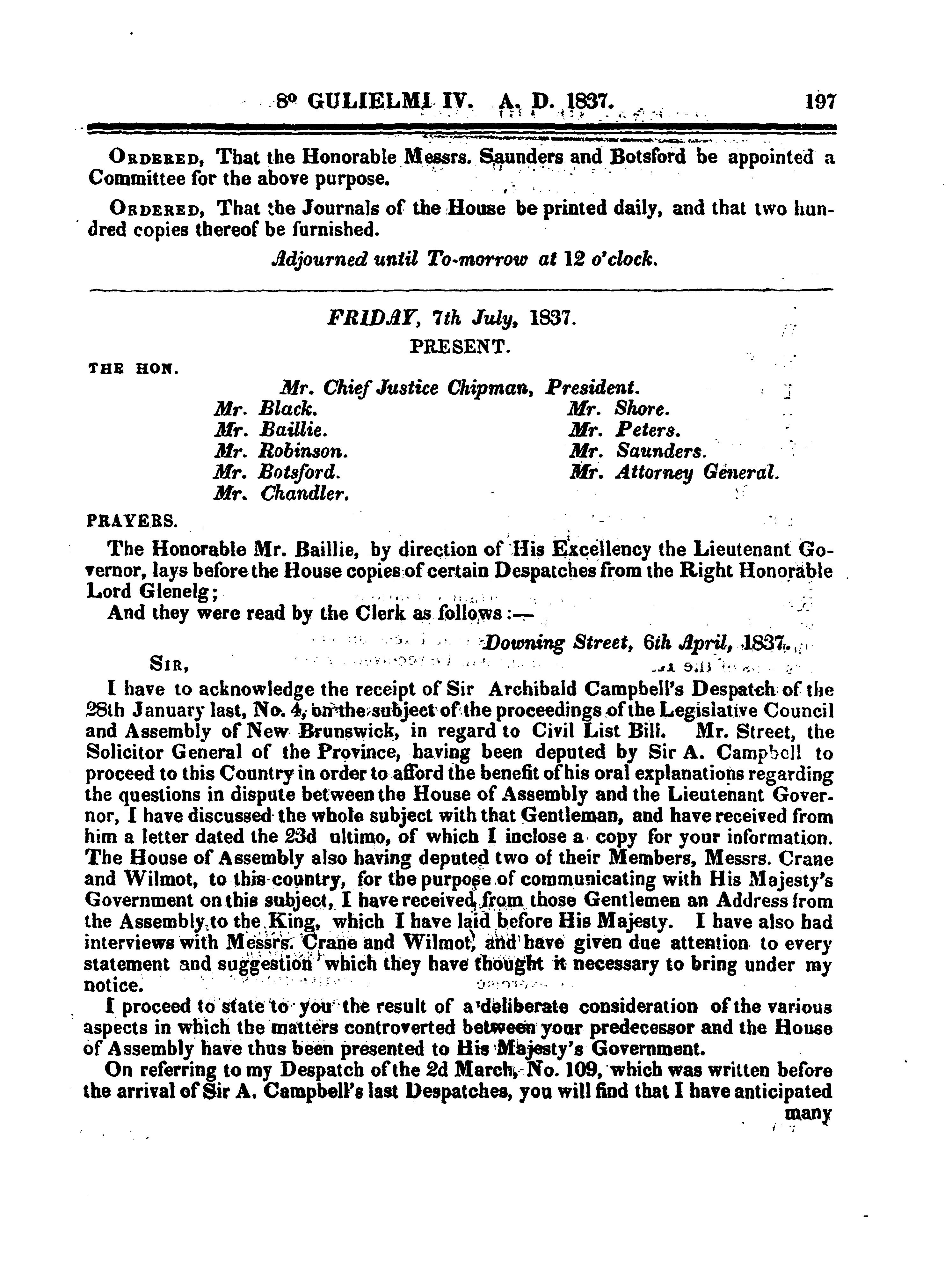 Journal of the Legislative Council ... of New Brunswick from 6th to 22d July, 1837 ... fifth session of the eleventh General Assembly : 1837