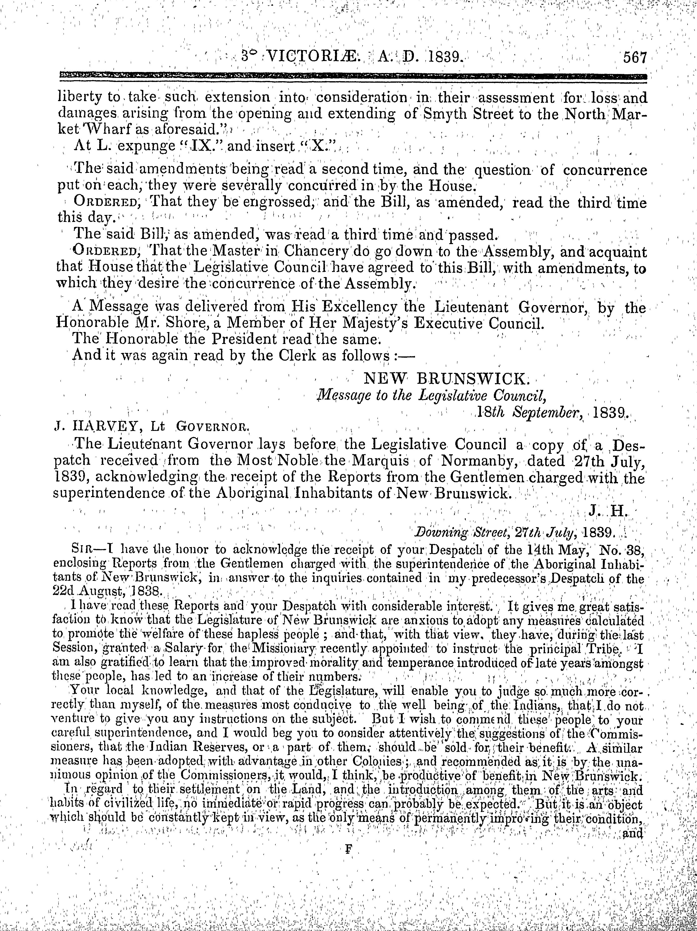 Journal of the Legislative Council of the province of New Brunswick from 10th to 20th September, 1839, being the third session of the twelfth General Assembly : 1839