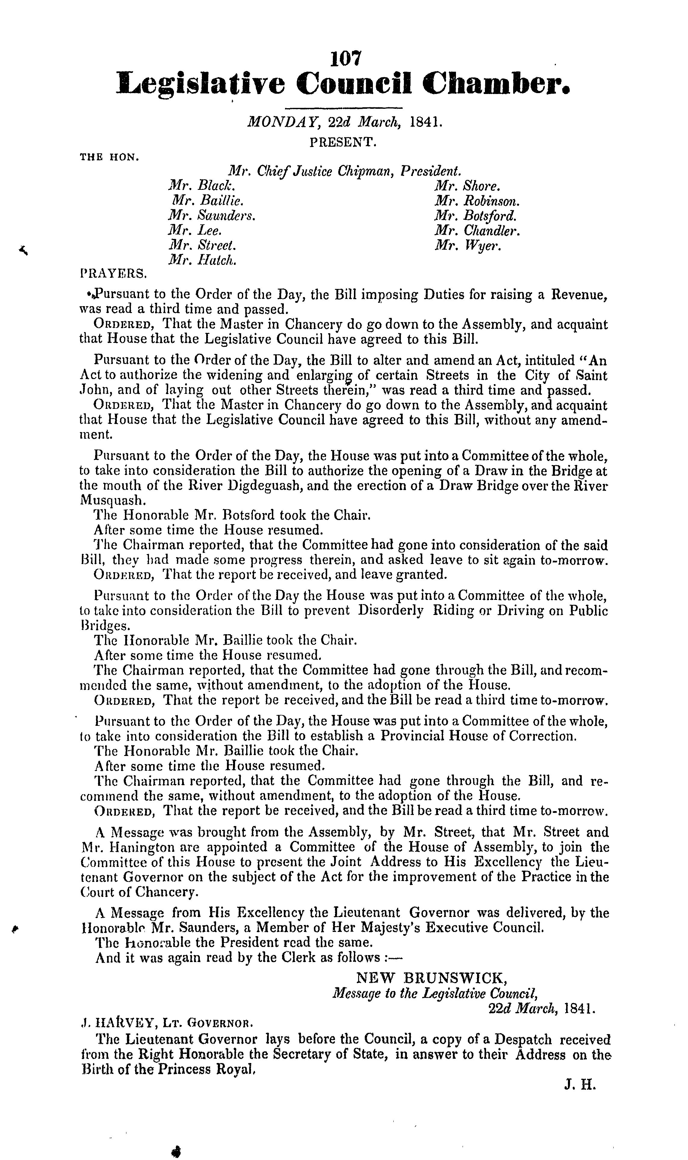 Journal of the Legislative Council of the province of New Brunswick ... : Journal of the Legislative Council, 1841 : 1841