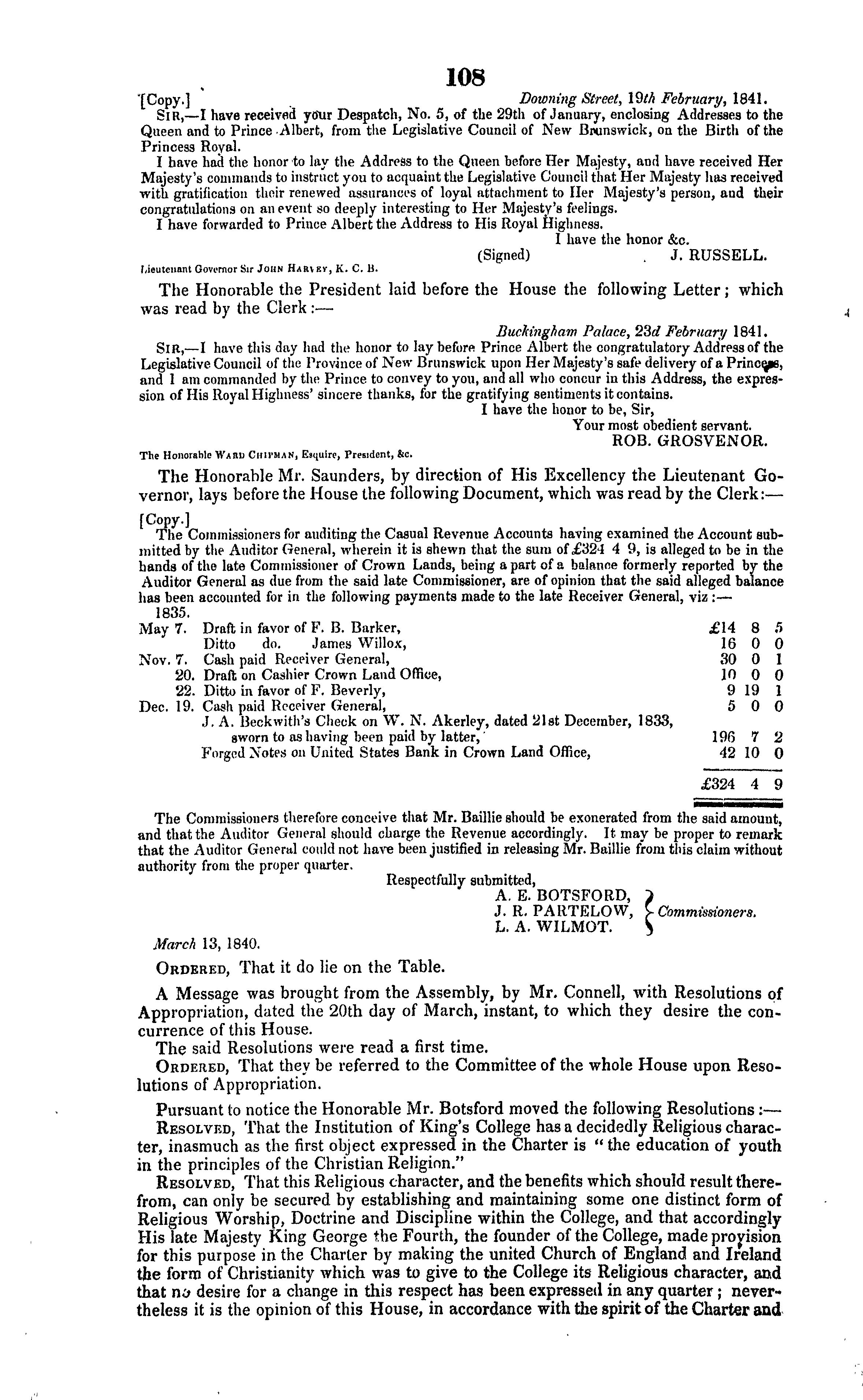 Journal of the Legislative Council of the province of New Brunswick ... : Journal of the Legislative Council, 1841 : 1841