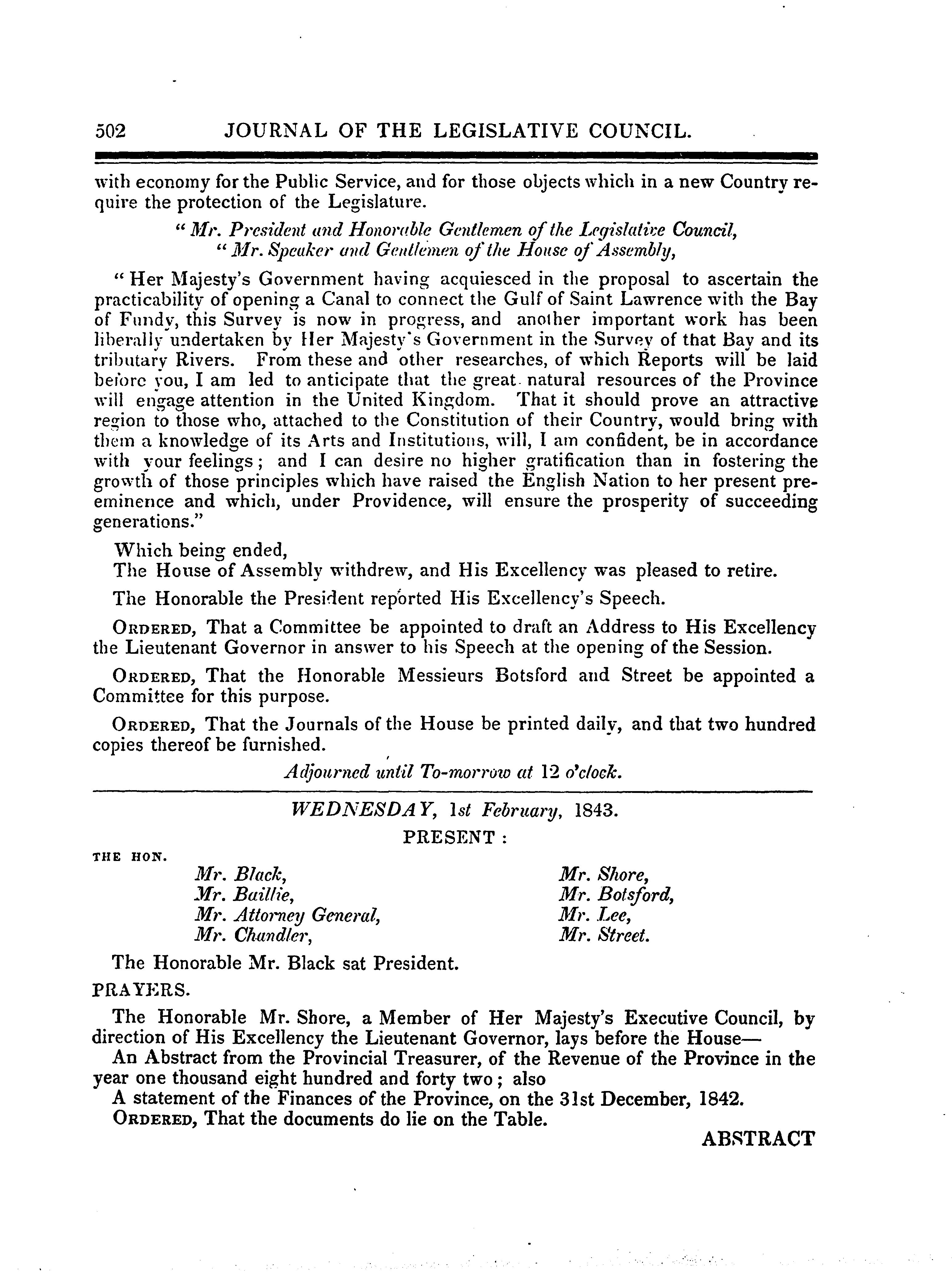 Journal of the Legislative Council ... of New Brunswick from 31st January to 11th April, 1843, ... first session of the thirteenth General Assembly : 1843