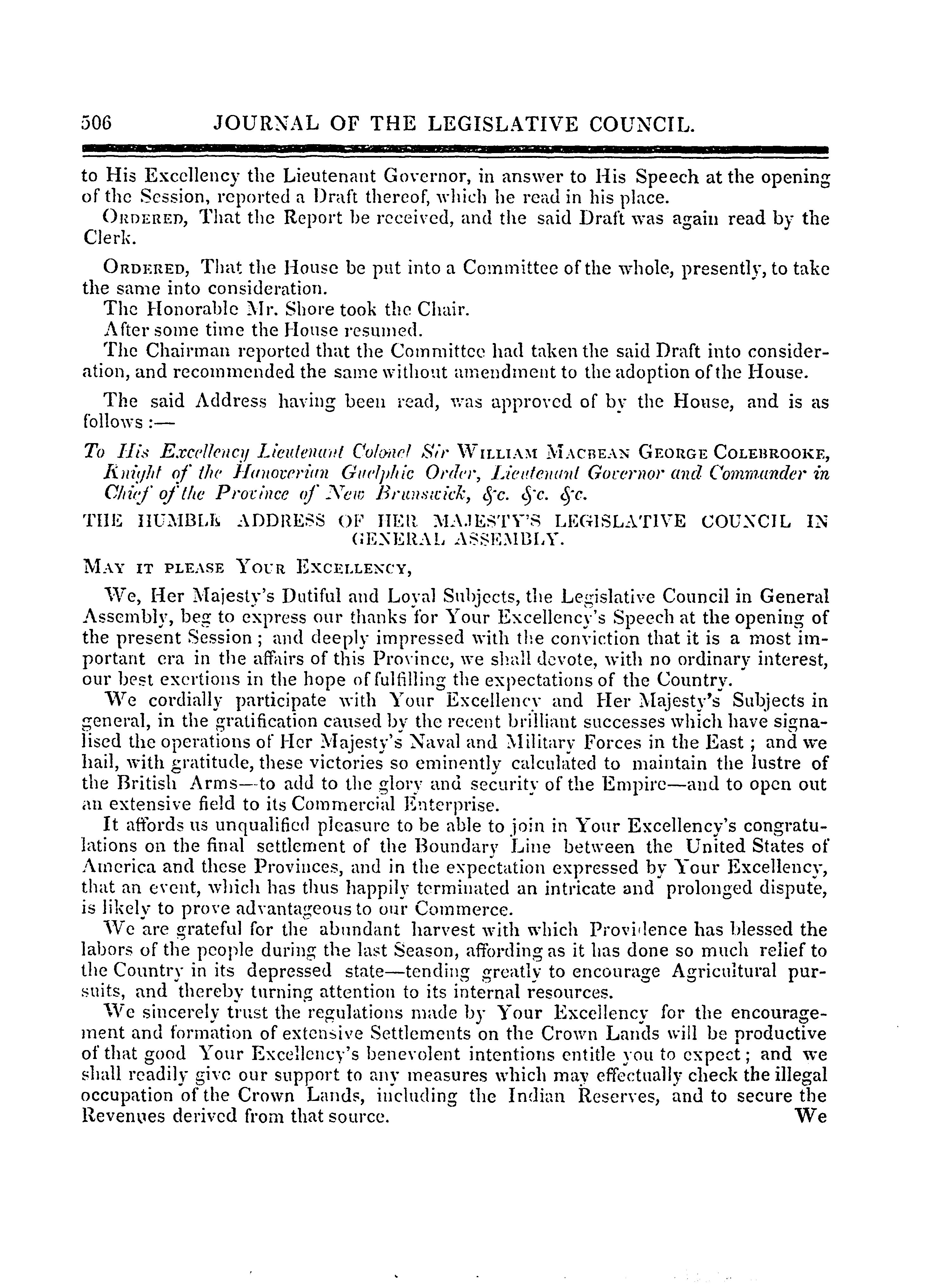 Journal of the Legislative Council ... of New Brunswick from 31st January to 11th April, 1843, ... first session of the thirteenth General Assembly : 1843