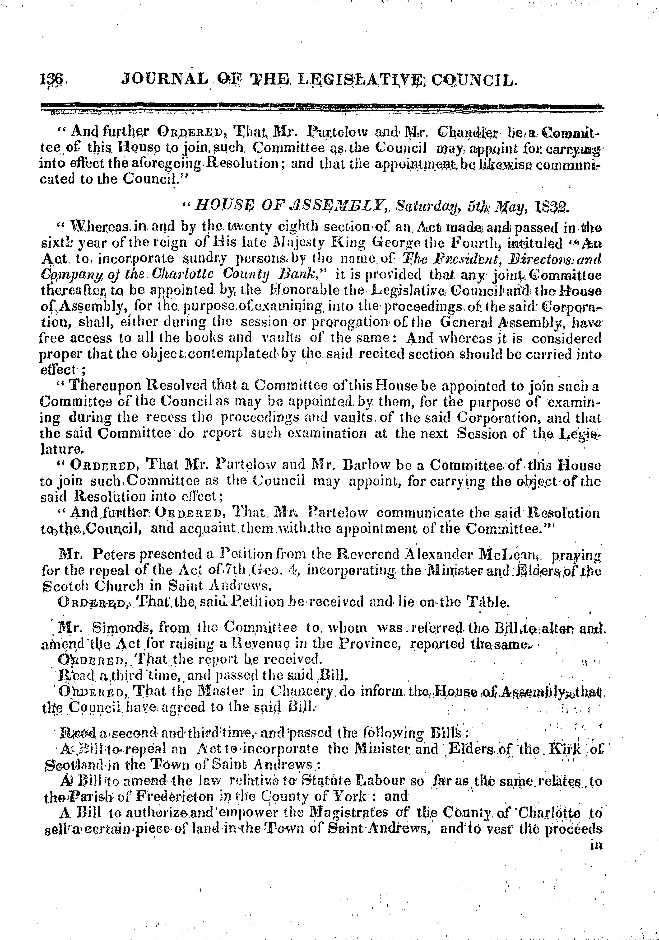 Journal of the Legislative Council of the province of New Brunswick ... : Journal of the Legislative Council of the province of New Brunswick from 19th January to 9th March, 1832, being the second session of the tenth General Assembly and from 3d May to 7th May, 1832, being the third session of the Tenth General Assembly : 1832