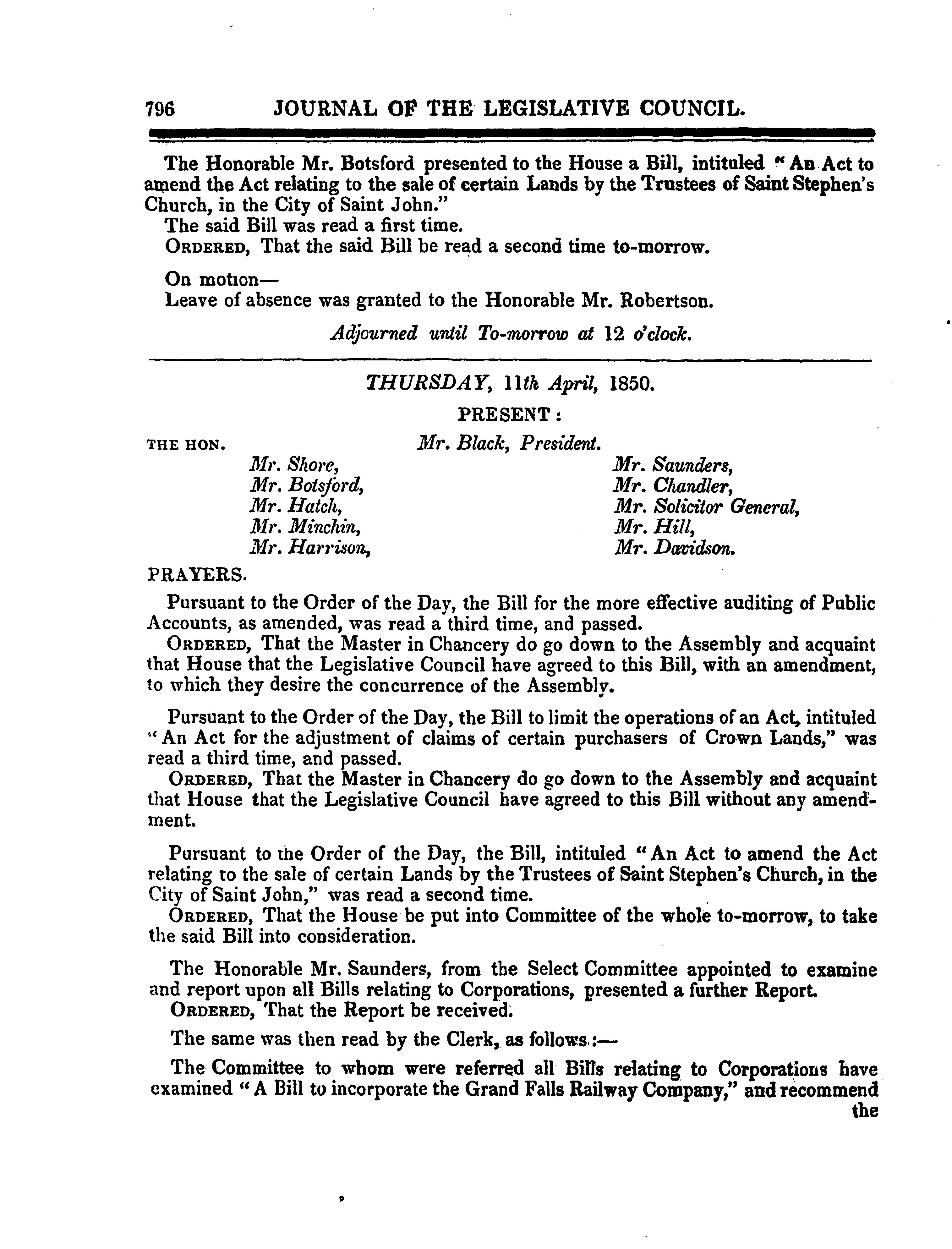 Journal of the Legislative Council ... of New Brunswick from 7th February to 26th April, 1850, ... fourth session of the fourteenth General Assembly : 1850