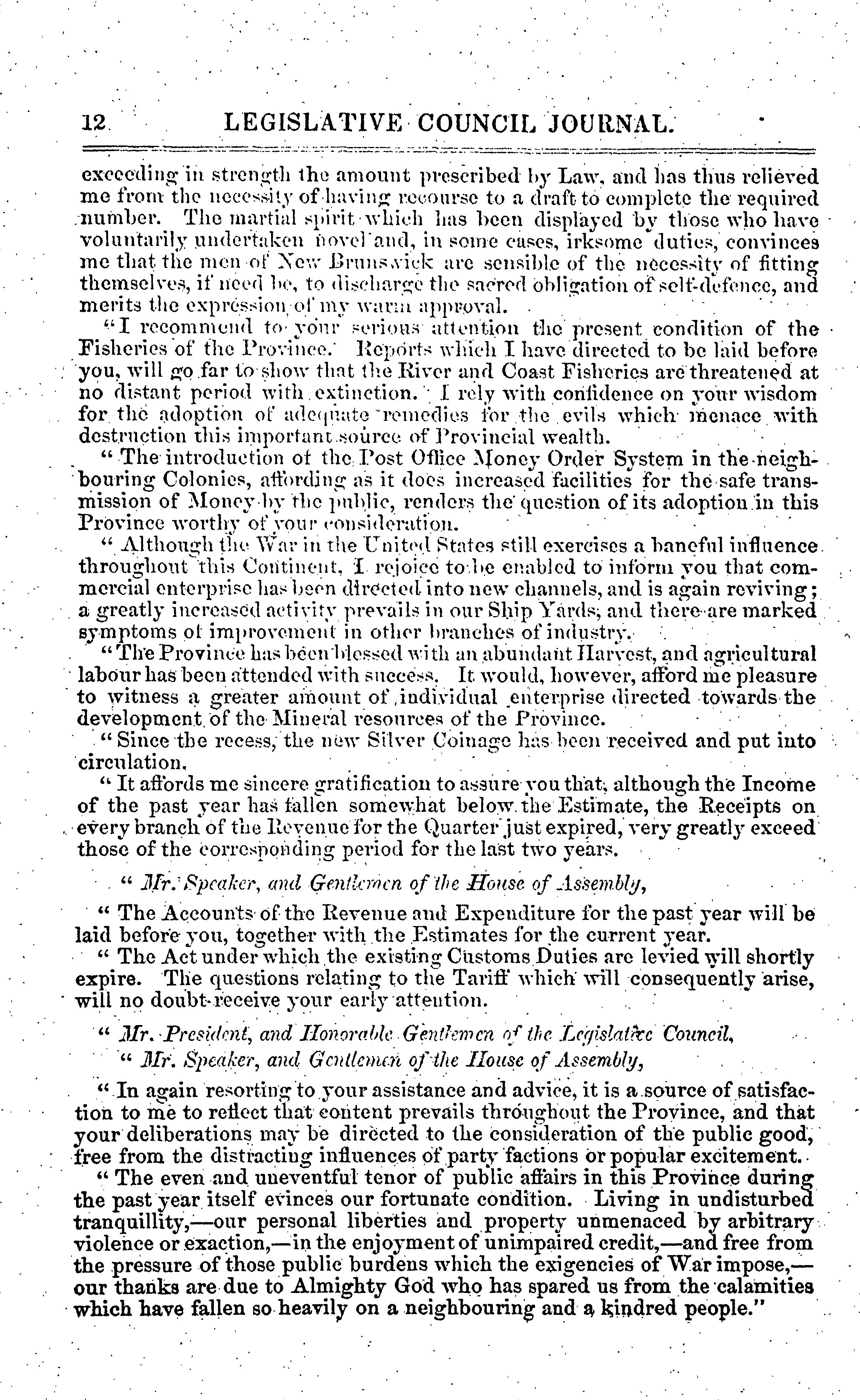 Journal of the Legislative Council ... of New Brunswick ... twelfth February to the twentieth April 1863, ... second session of the nineteenth General Assembly : 1863