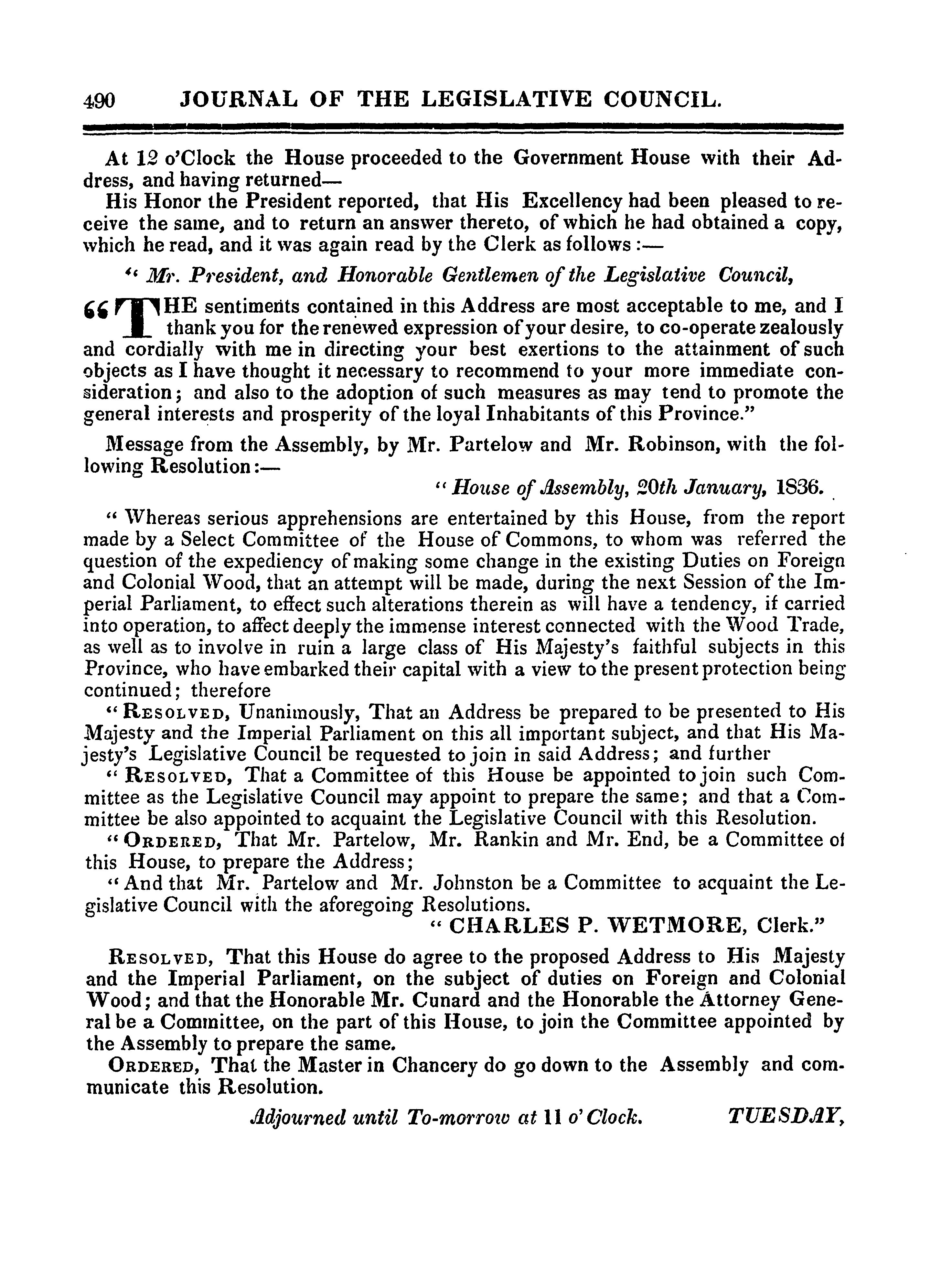 Journal of the Legislative Council ... of New Brunswick from 20th January to 16th March 1836, ... third session of the eleventh General Assembly : 1836