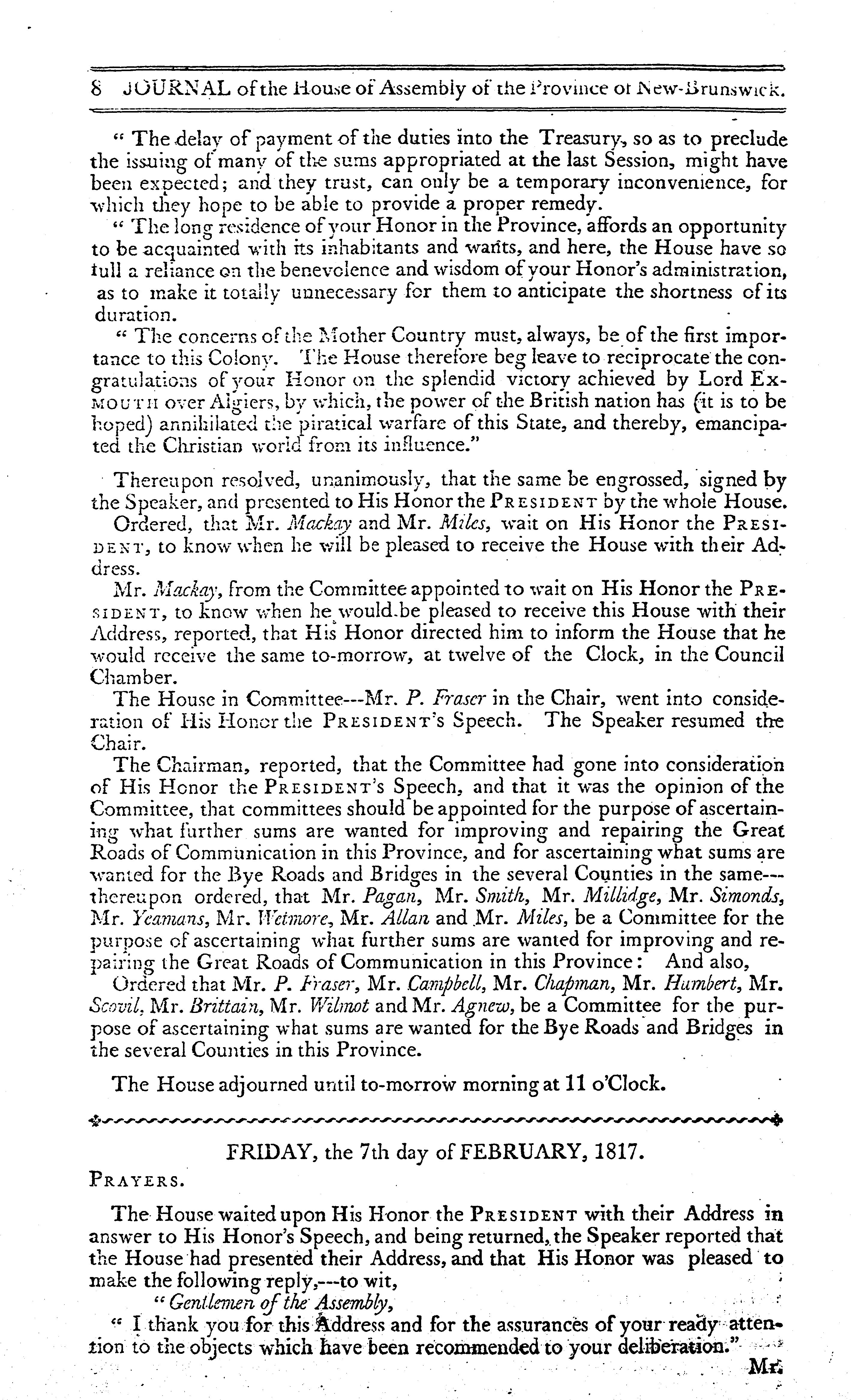 - Journal of the House of Assembly of the province of New-Brunswick from ... February to ... March, 1817 : 1817