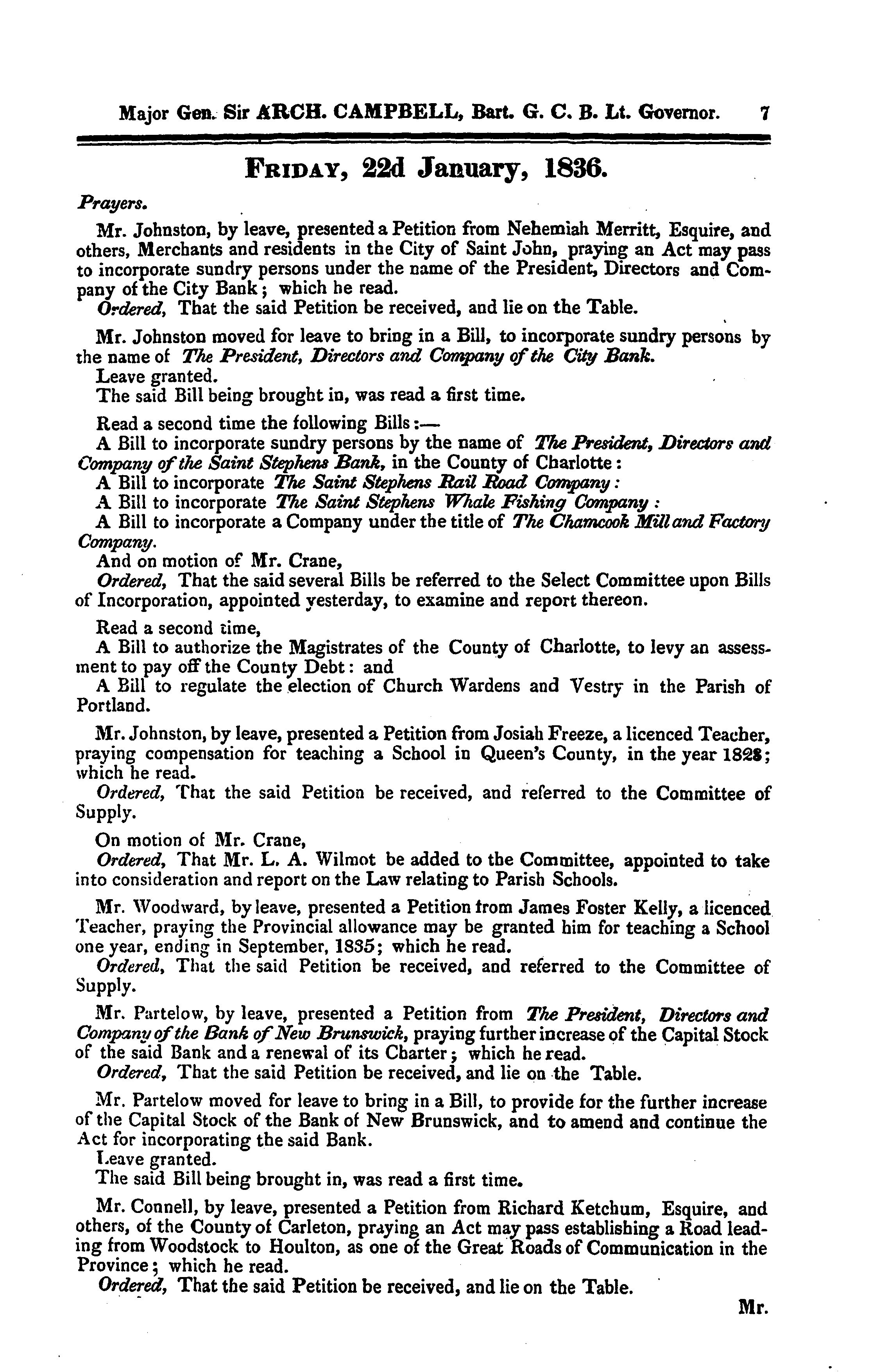 Journal of the House of Assembly of the province of New Brunswick ... January to ... March [1836] : 1836