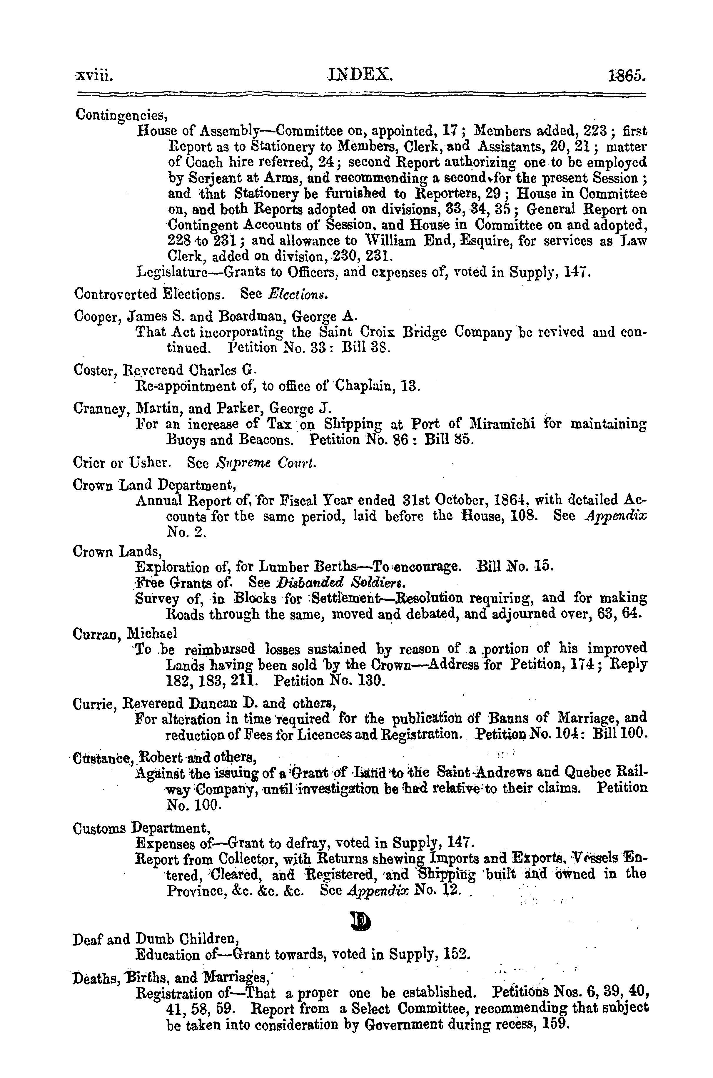Journal of the House of Assembly of ... New Brunswick from ... April to ... June, 1865 ... : 1865