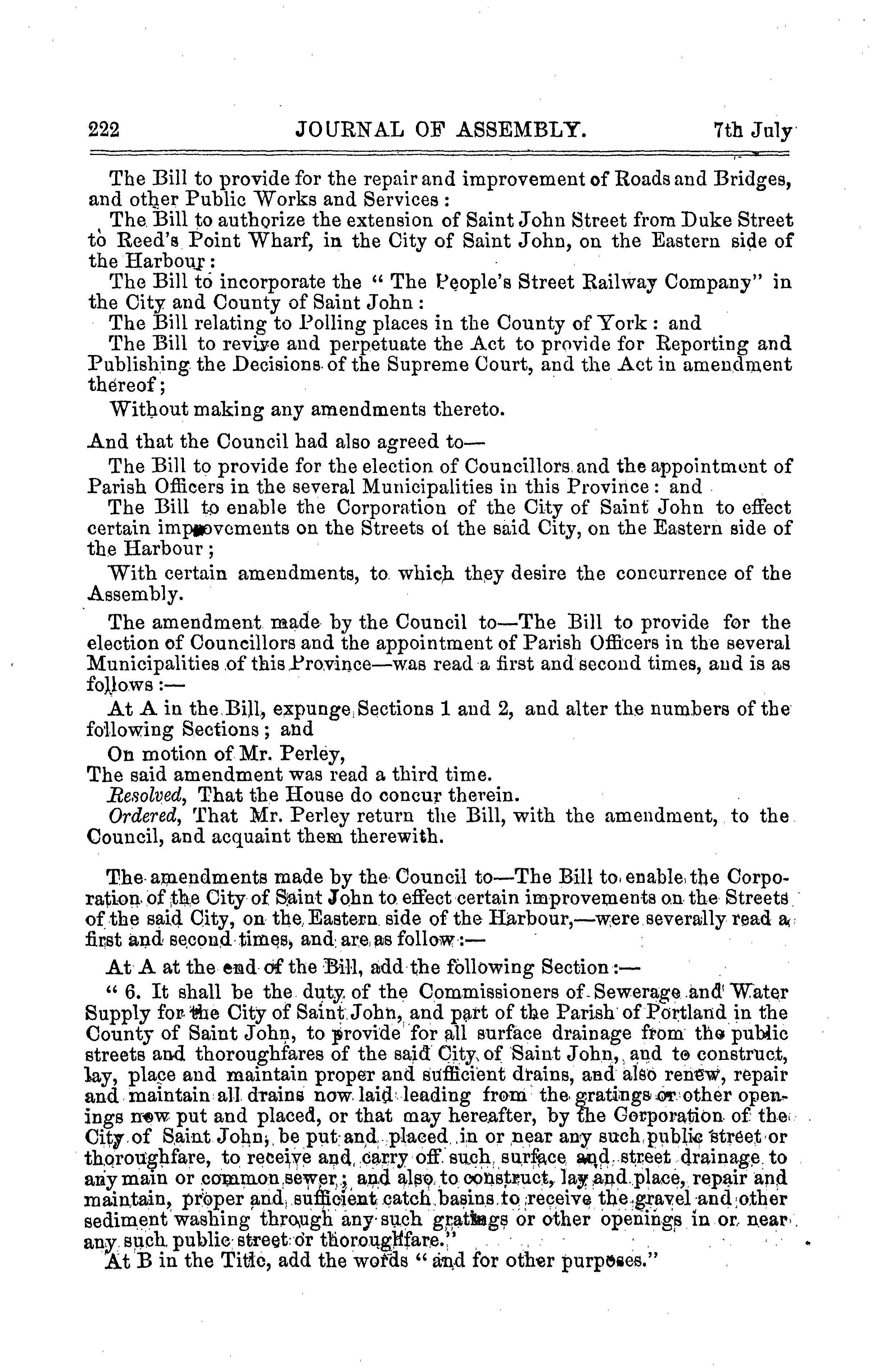 Journal of the House of Assembly of ... New Brunswick for the second session of the twentieth ... and the first session of the twenty first General Assembly : 1866