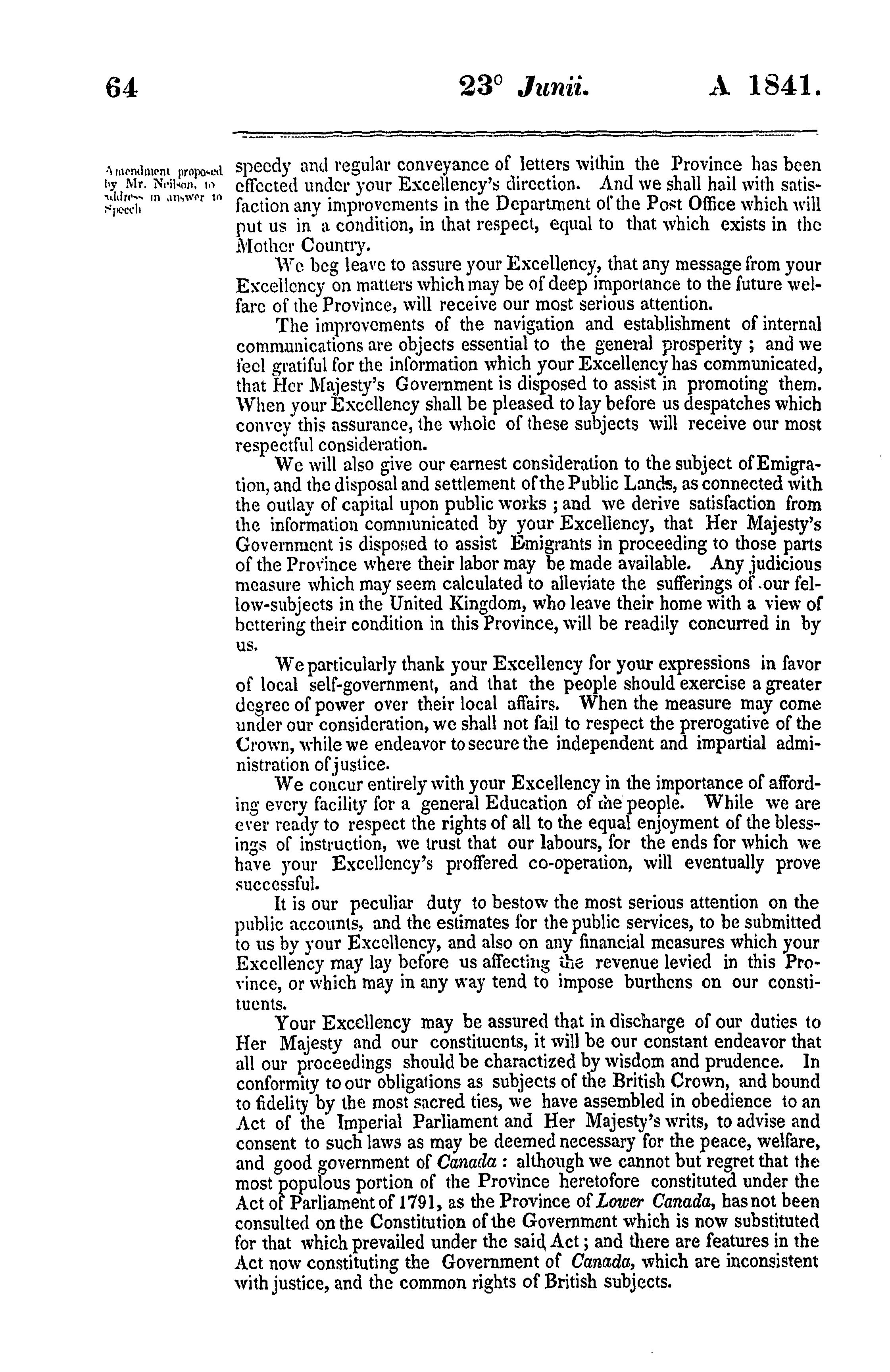 Journals of the Legislative Assembly of the Province of Canada from the 14th day of June to the 18th day of September, in the year of Our Lord 1841 and in the 4th & 5th years of the reign of ... Queen Victoria : being the first session of the first Provincial Parliament of Canada : 1841