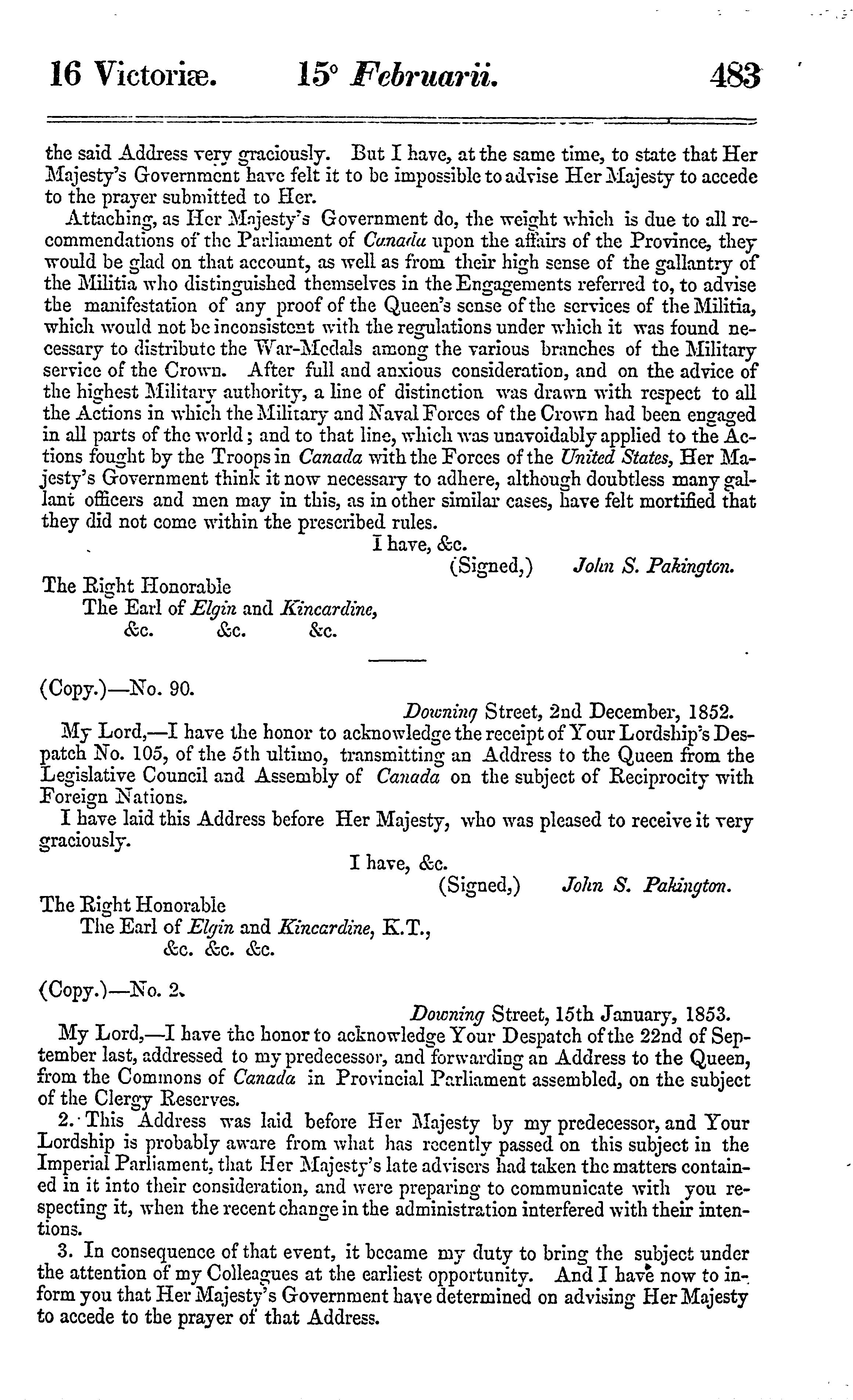 Journals of the Legislative Assembly of the Province of Canada ... and in the sixteenth year of the reign of ... Queen Victoria : being the 1st Session of the 4th Provincial Parliament of Canada : part I, 19th August, 1852 to 26th April, 1853 : 1852/53 (pt. 1)