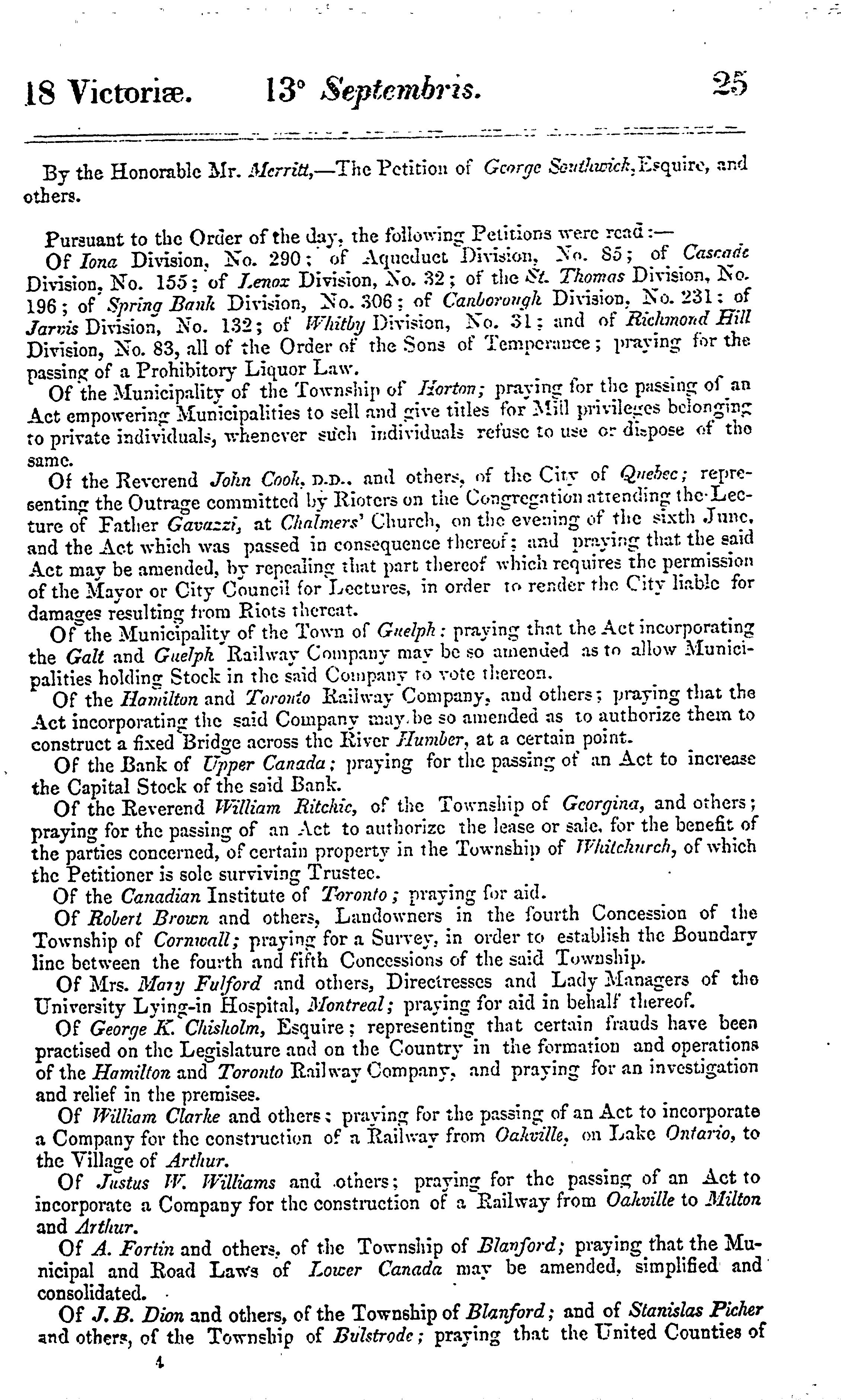 Journals of the Legislative Assembly of the Province of Canada from the 5th September to the 18th December, 1854 ... in the eighteenth year of the reign of ... Queen Victoria : being the 1st session of the 5th Provincial Parliament of Canada : part I : 1854/55 (pt. 1)