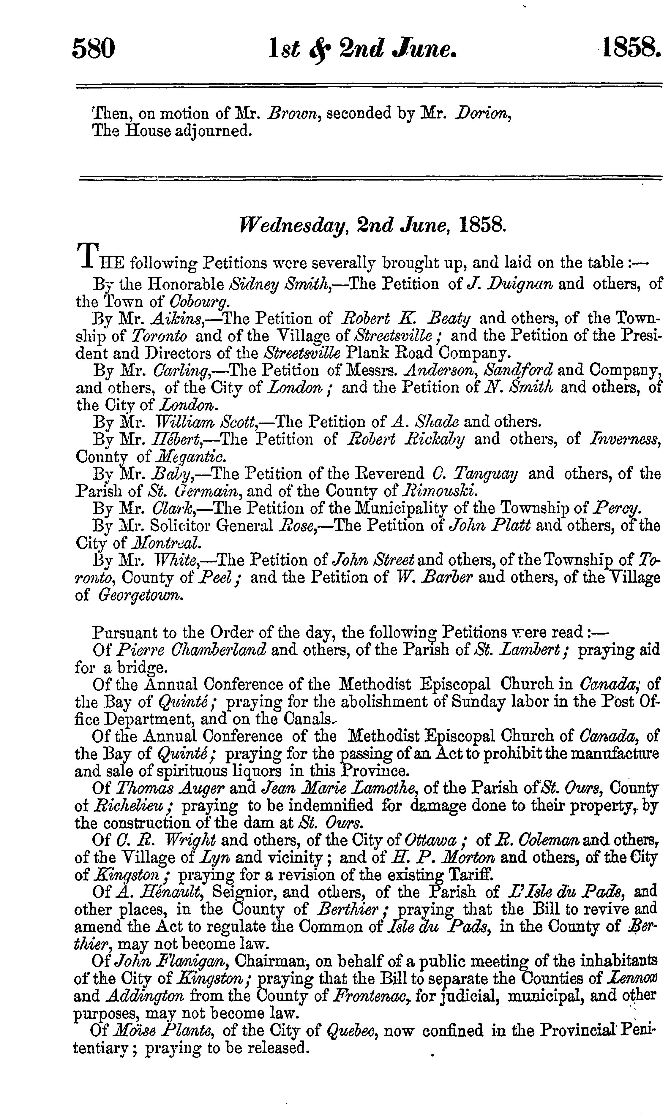 Journals of the Legislative Assembly of the Province of Canada from the 1st June to the 16th August, 1858 ... in the twenty-first and twenty-second years of the reign of ... Queen Victoria : being the 1st session of the 6th Provincial Parliament of Canada ; part II : 1858 (pt. 2)